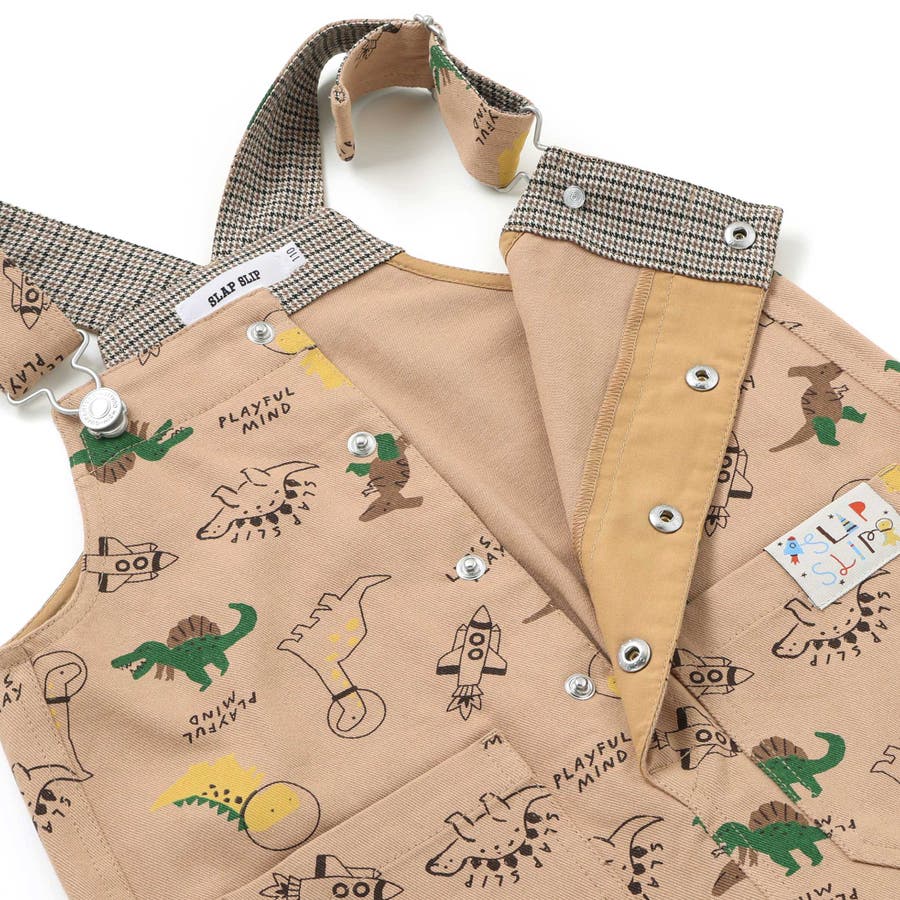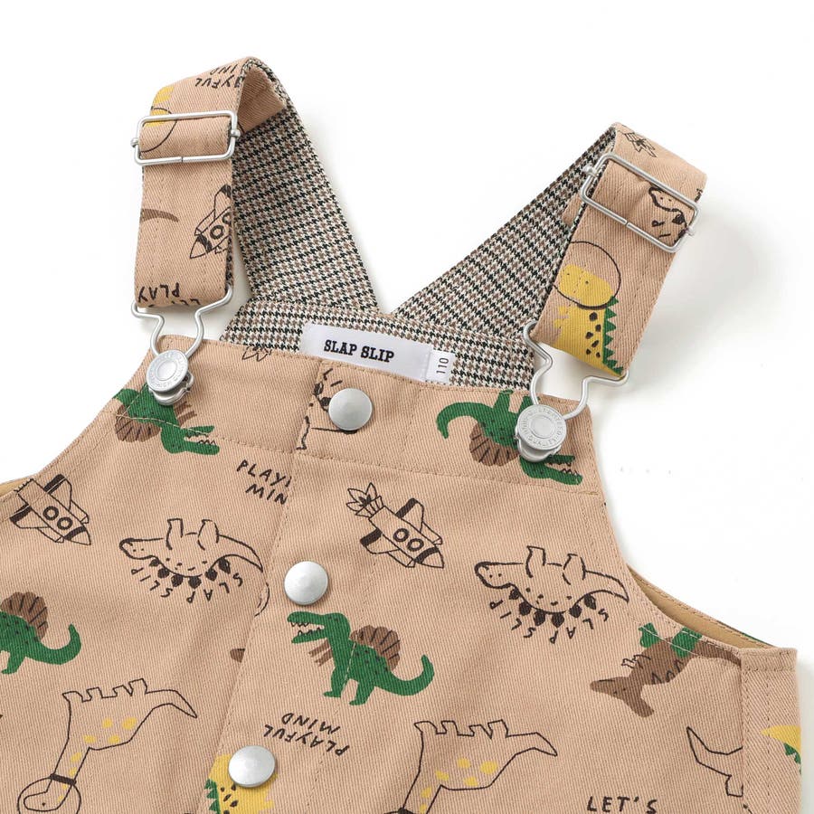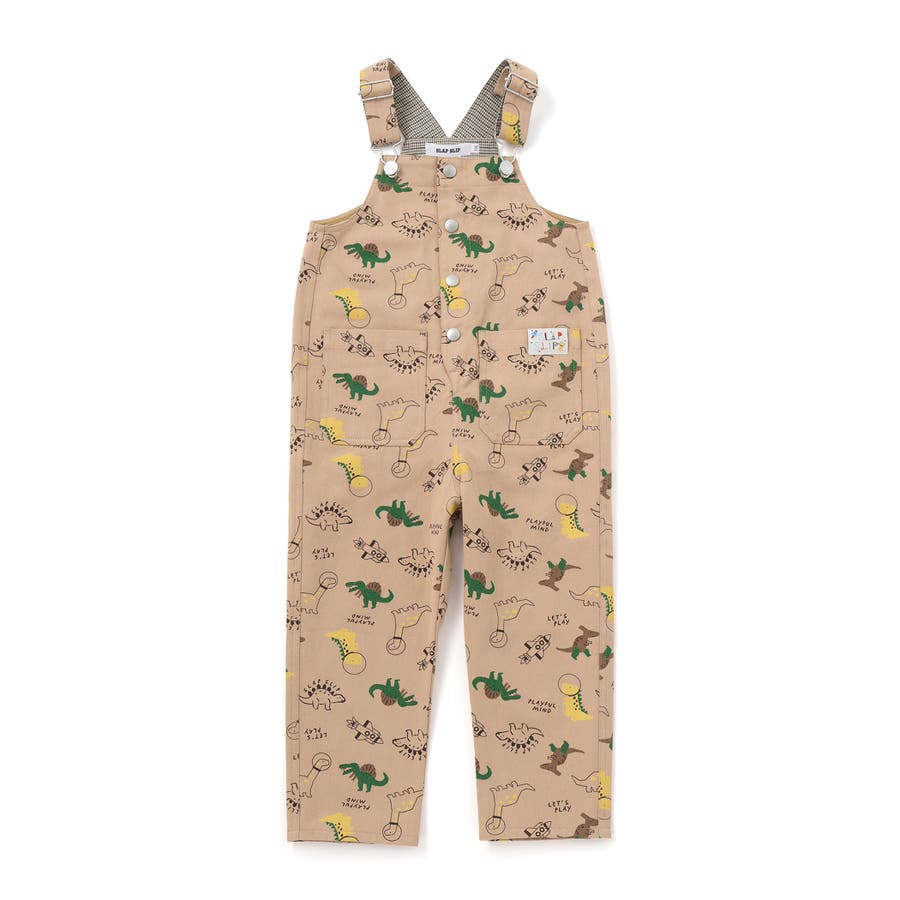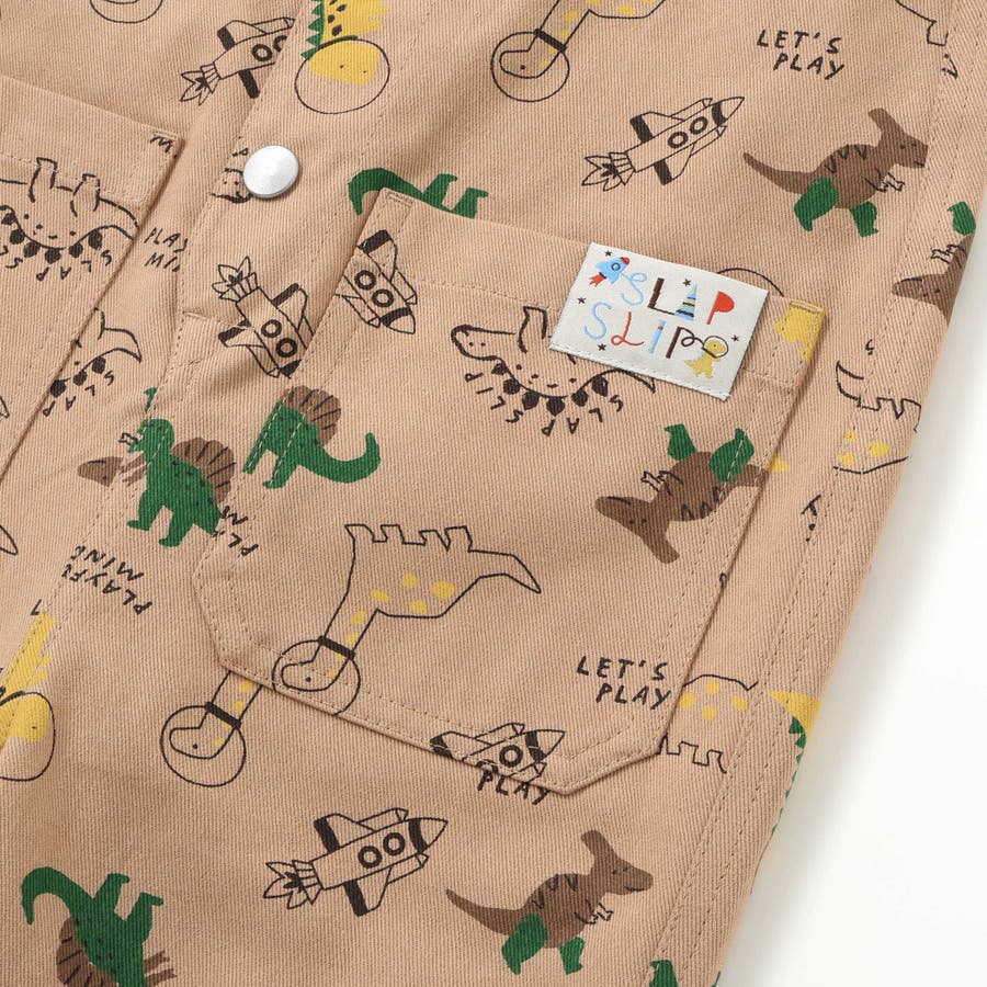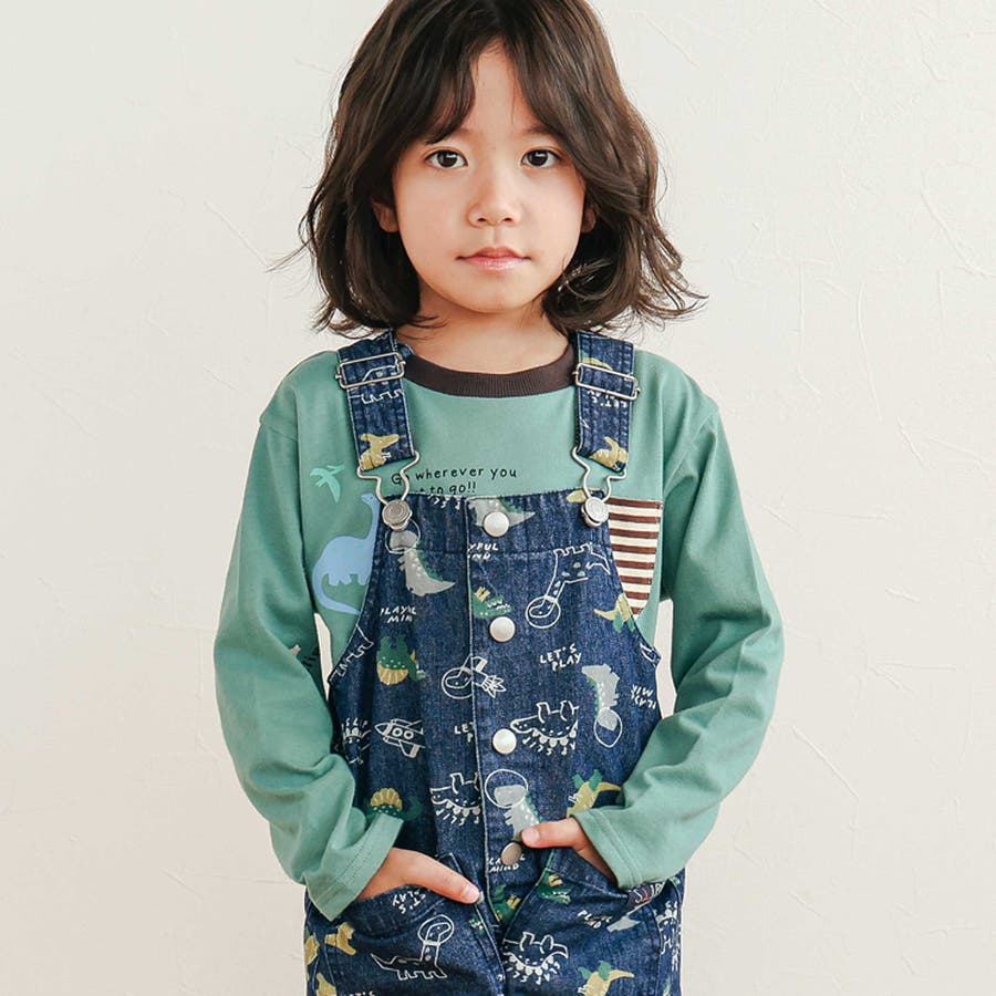 【お揃い】デニムツイル恐竜ロケット総柄サロペット(80~120cm)