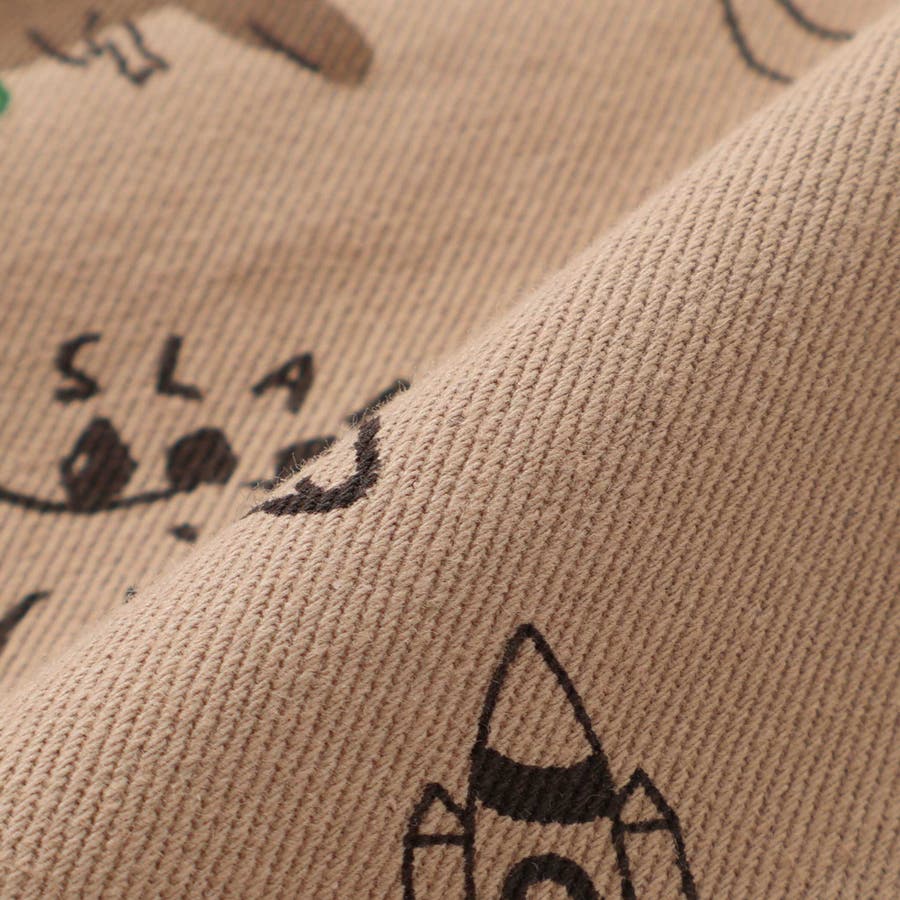 恐竜にロケット、パッと絵を引く総柄のプリントがポイント!