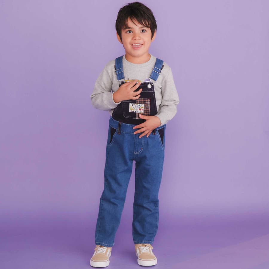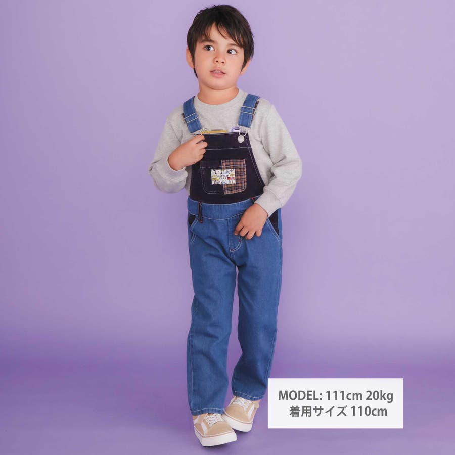 デニムツイルコーデュロイチェック切り替えサロペット(80~120cm)