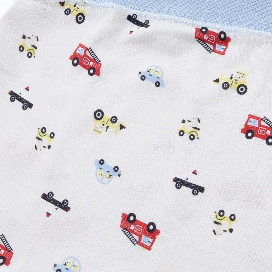 【はたらくくるま】POPでカラフルなはたらくくるまの総柄、セットはおしりにはたらくくるまをオンしたカッコいいデザイン。