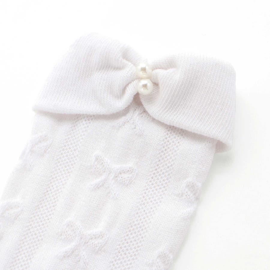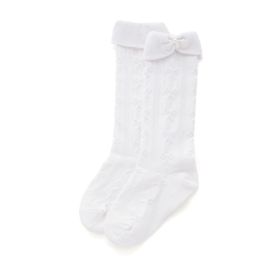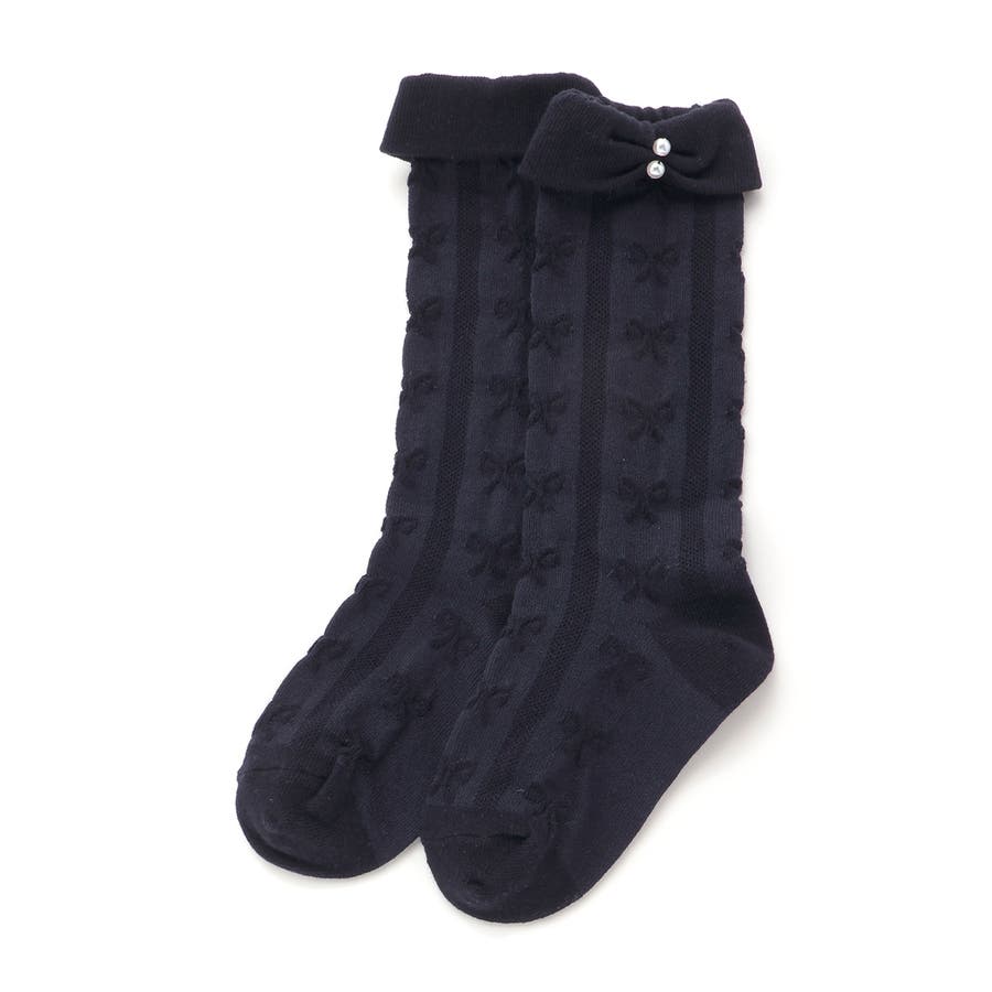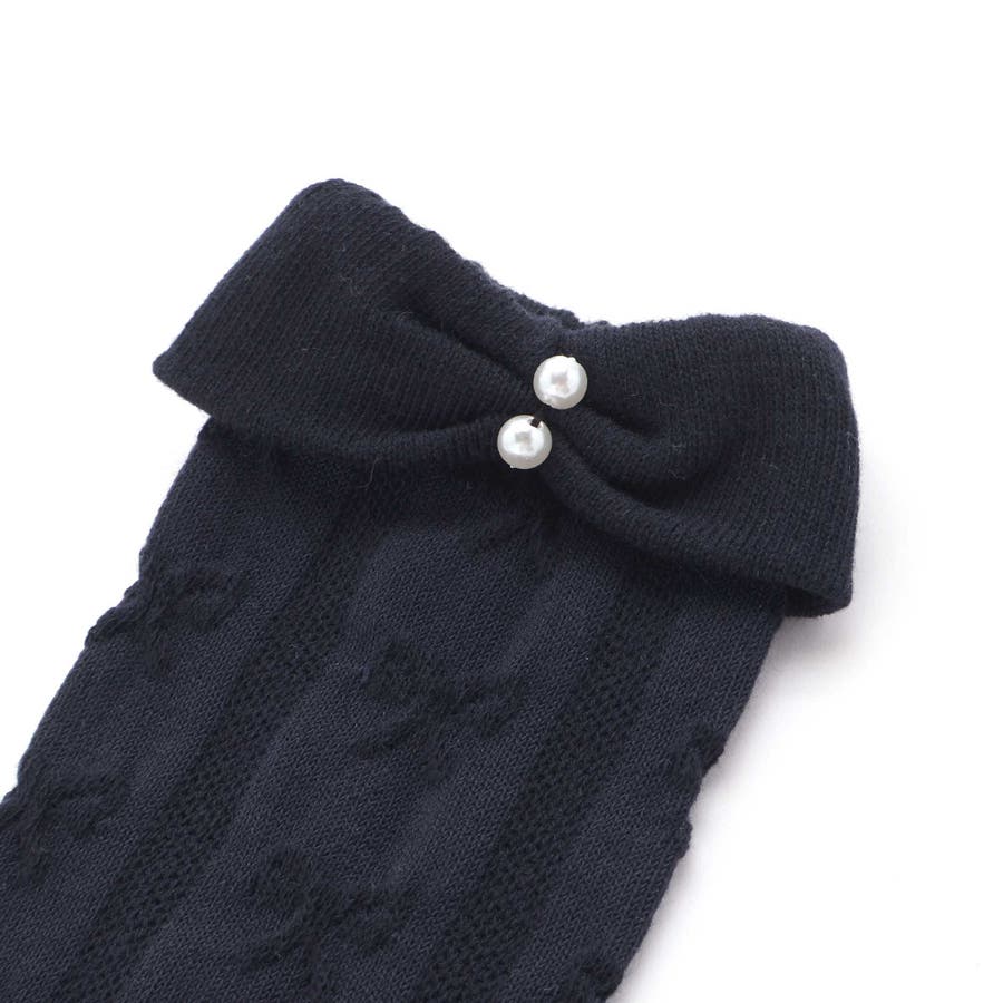 パールビーズ付き折り返しリボンハイソックス(13~21cm)