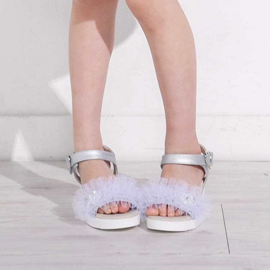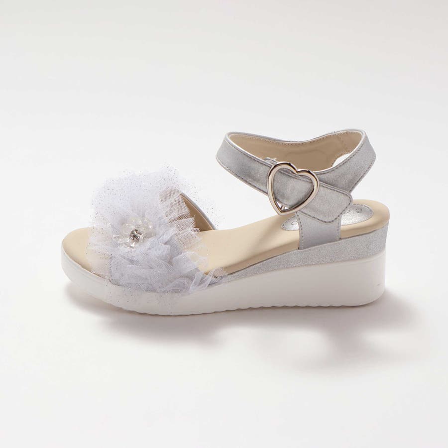 キラキラくしゅくしゅチュールお花モチーフ付きウェッジソールサンダル(16~21c…