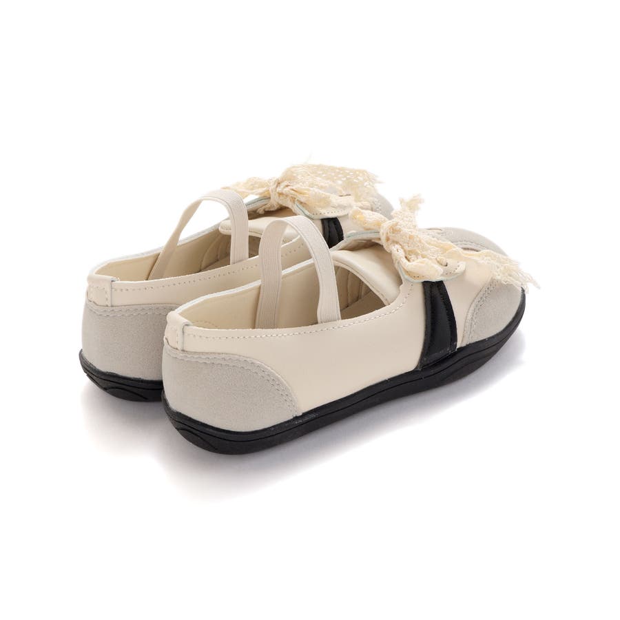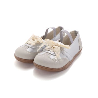 繊細なレースリボンが可憐なアクセントになり、シンプルなデザインの中にも女の子らしい華やかさを添えてくれるスニーカー。