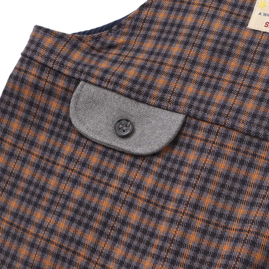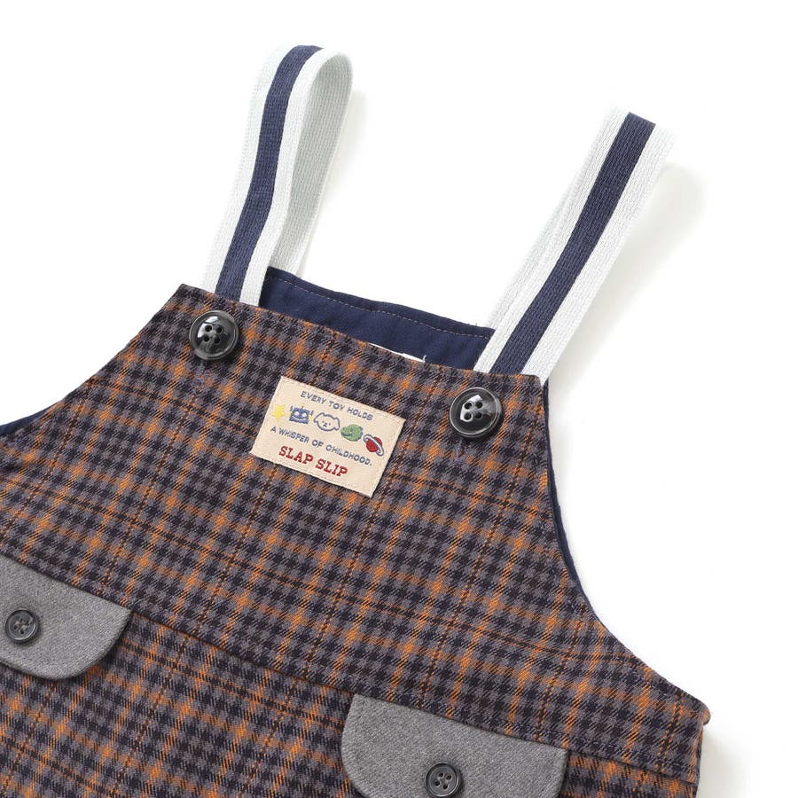 セットのサロペットのウエスト部分にほどこしたボタン付きフラップがお兄ちゃんがはいているみたいなデザインでオシャレ。