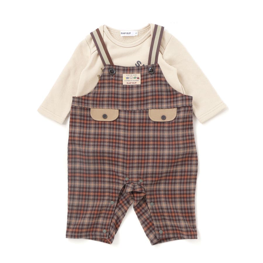 アニマルイヌ恐竜プリントボディミニ+チェックサロペット(70~80cm)