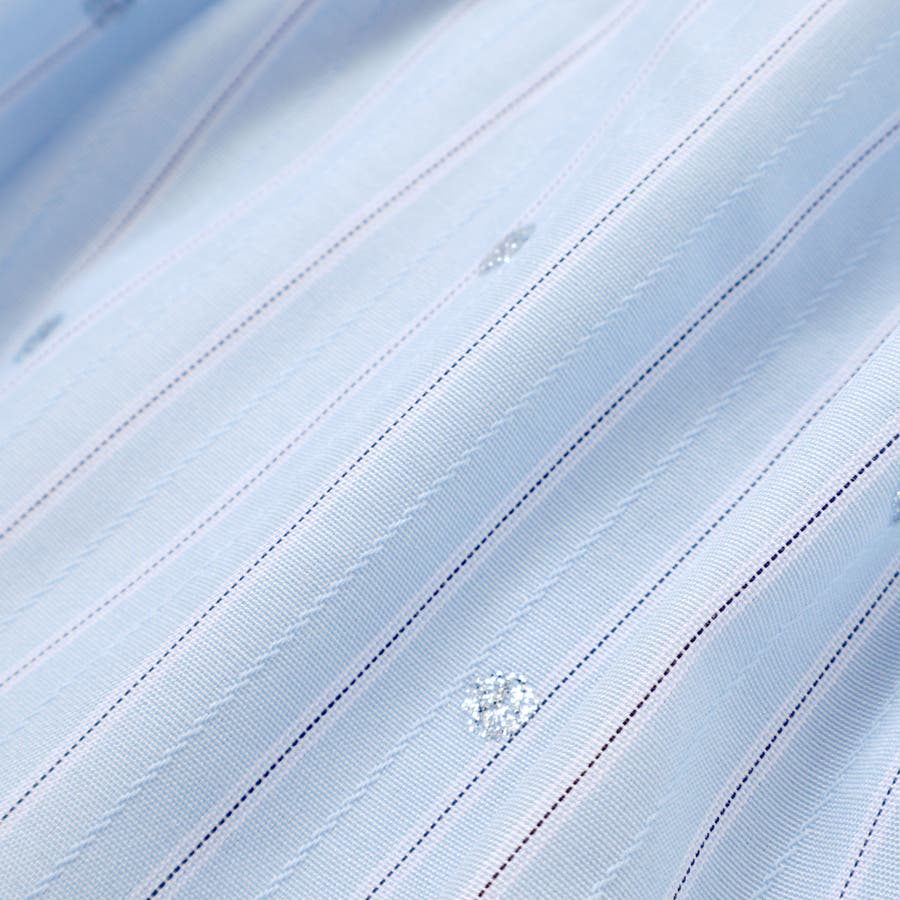 カラーごとに異なる生地で、ネイビー系は上品な小さなお花のドットデニム、ブルー系は爽やかなストライプにキラキラのドットを使用しています。