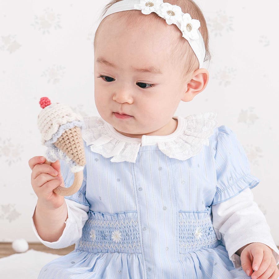 ワンピースとのコーディネートで、ベビーのシルエットを華やかに彩ります。