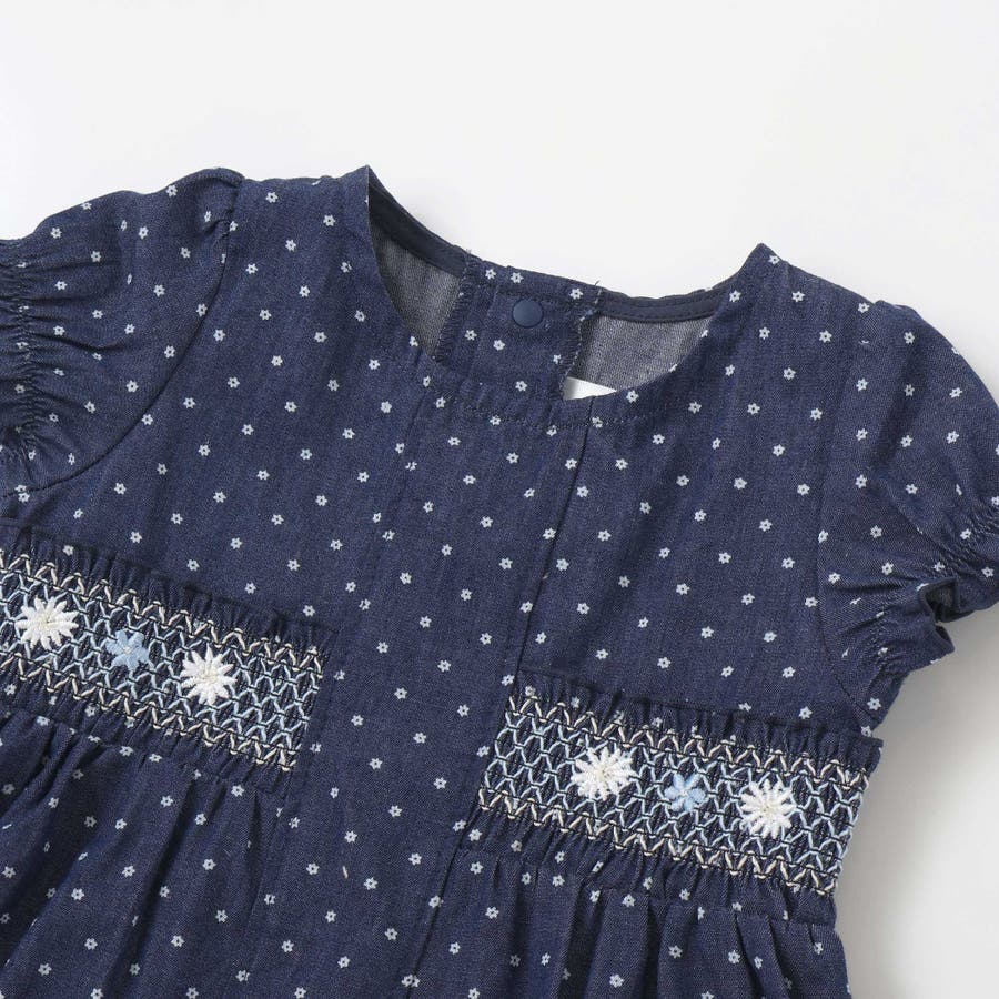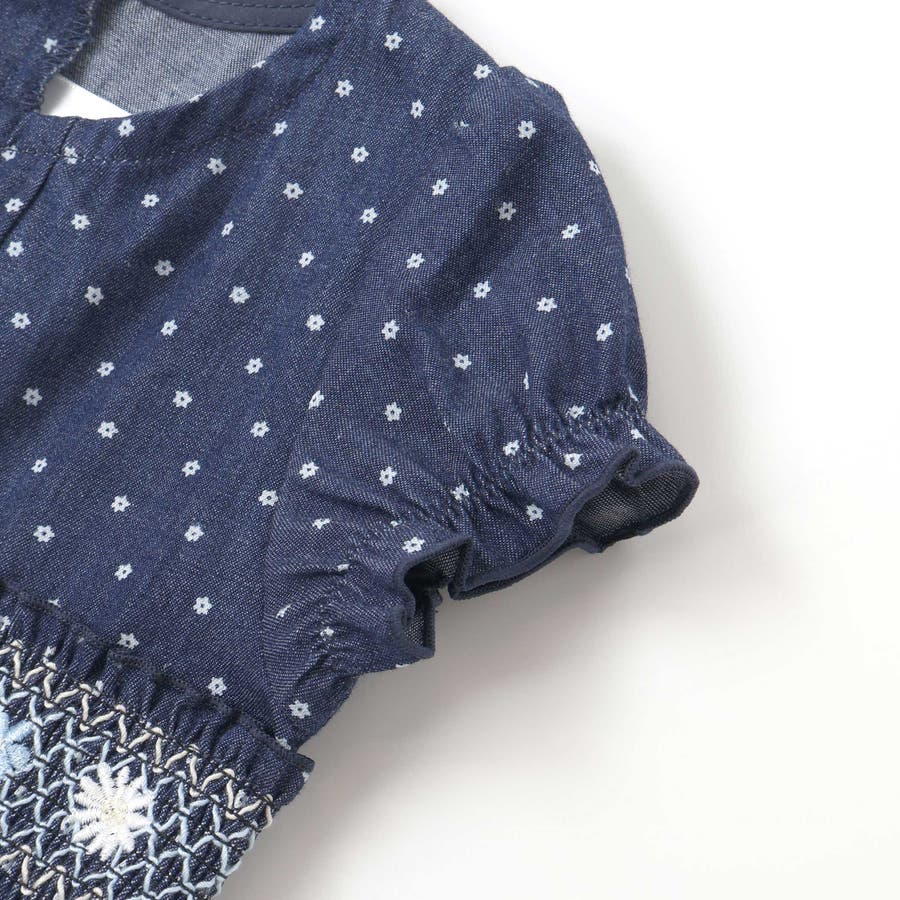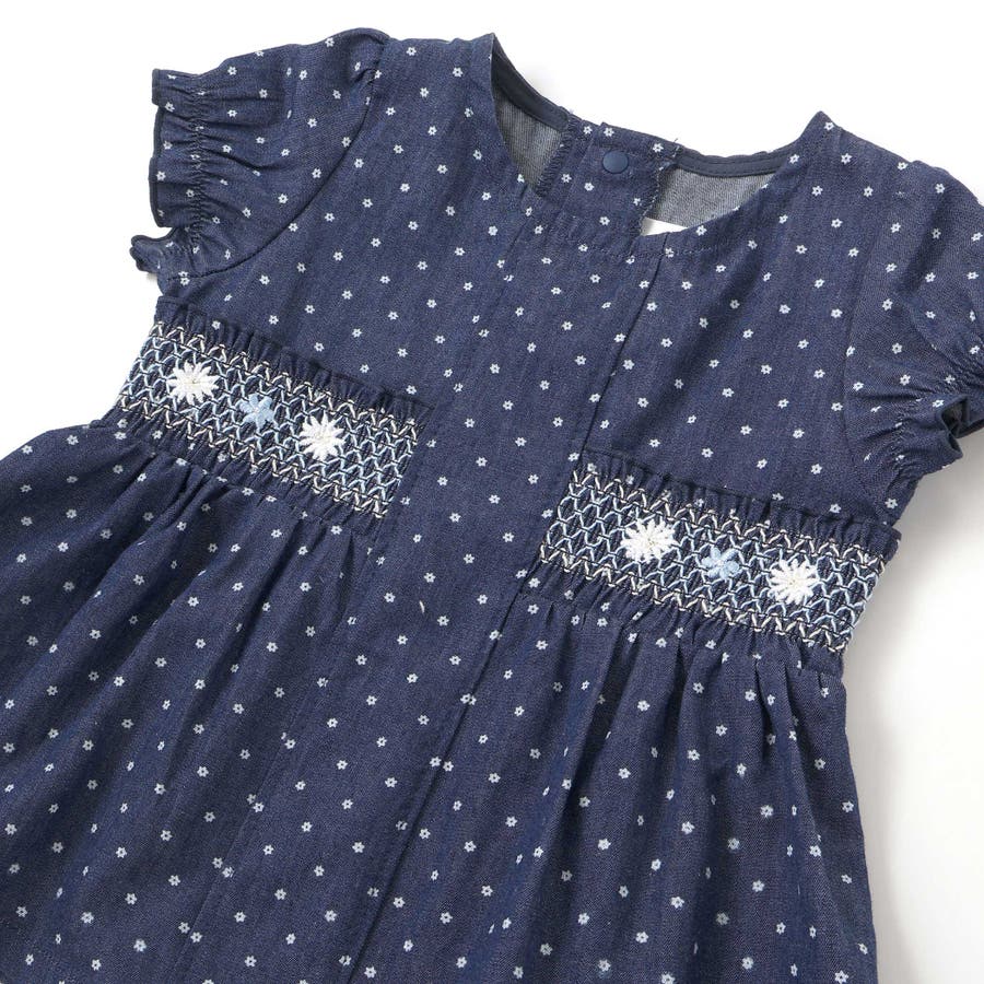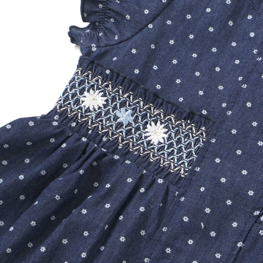 花ドットデニムラメドット柄ストライプスモッキング刺しゅうワンピース+ブルマセット…