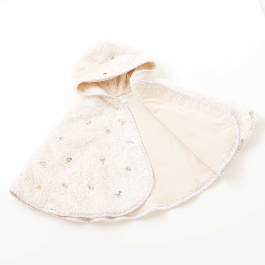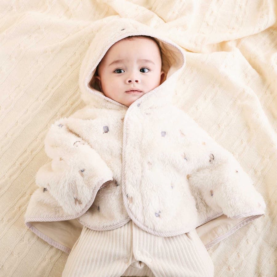 【お揃い】フード付き総柄刺しゅうもこもこボアマントベビー(50~90cm)