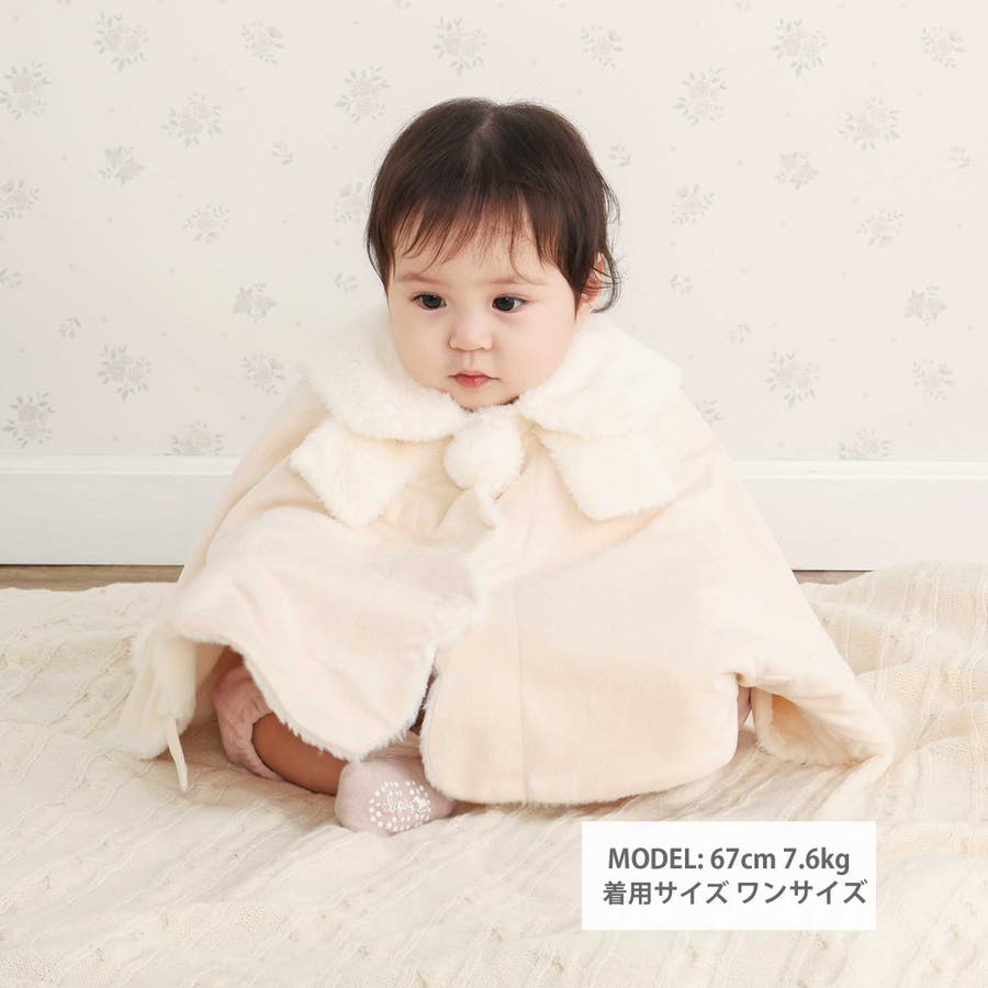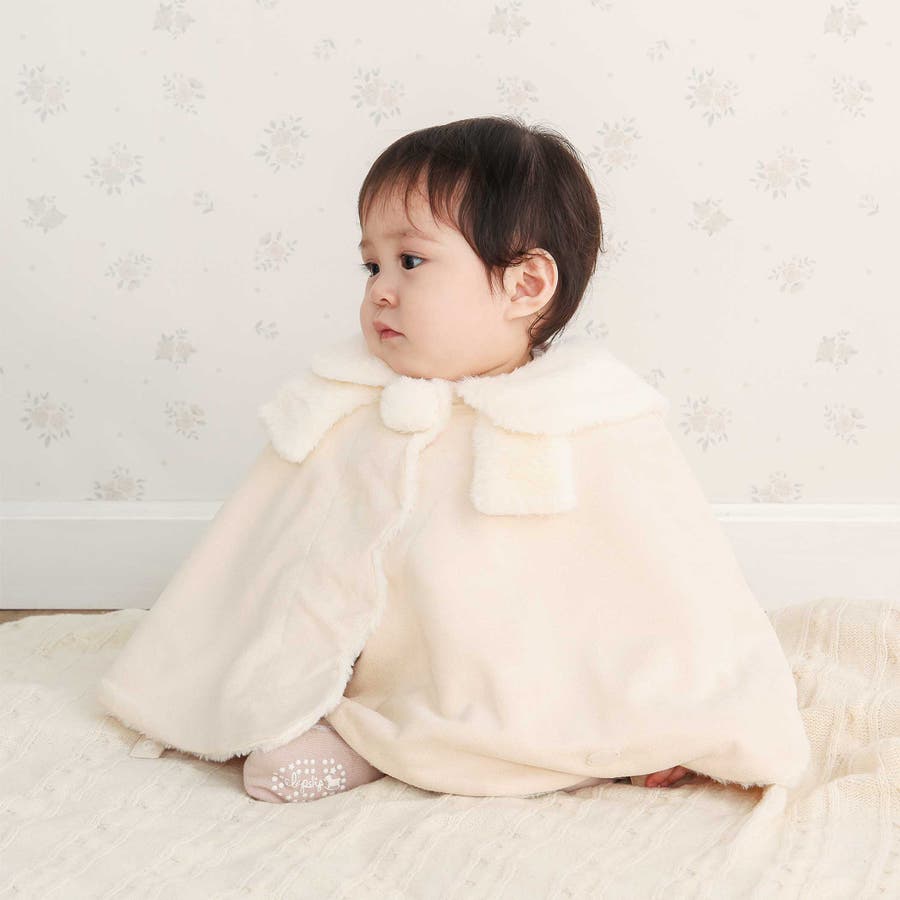 ファーリボン襟スウェードマントベビー(50~90cm)