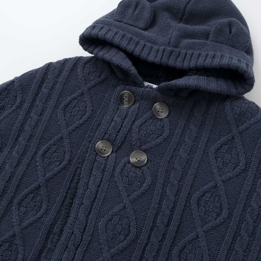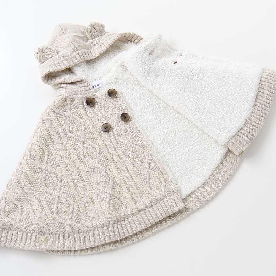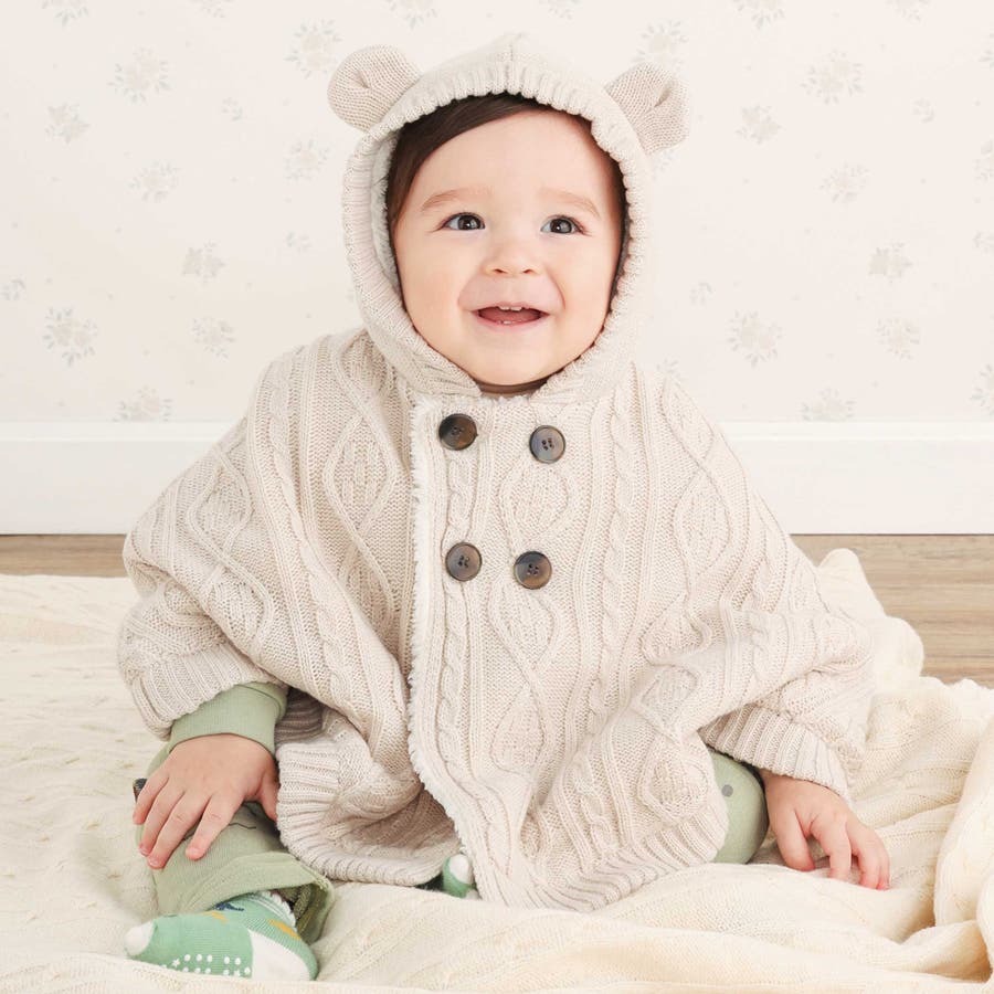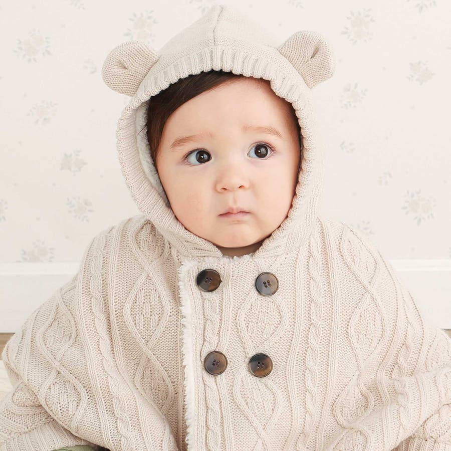 【お揃い】クマ耳フード付き裏ボアケーブルマントベビー(50~90cm)