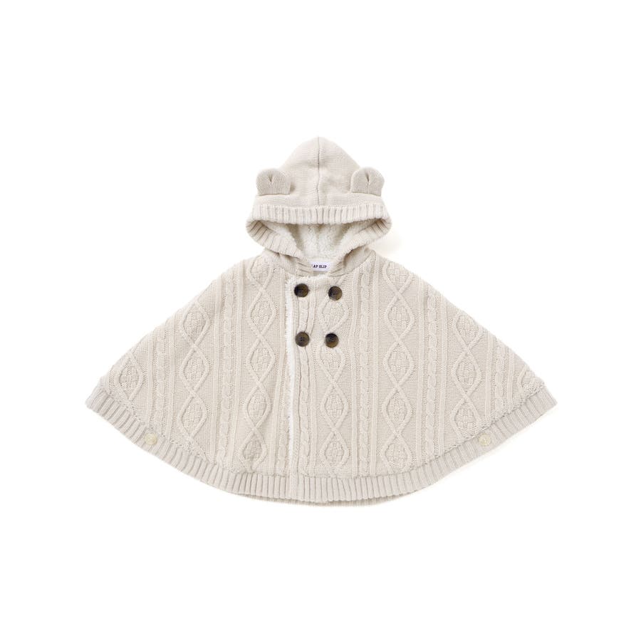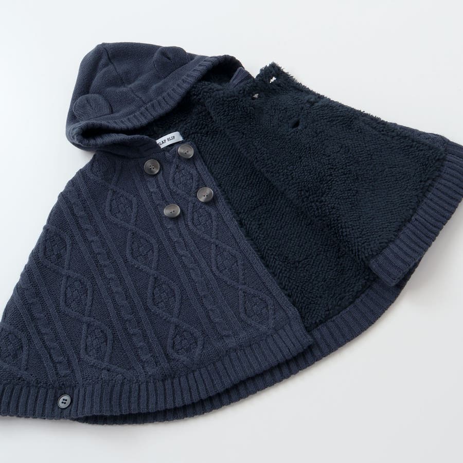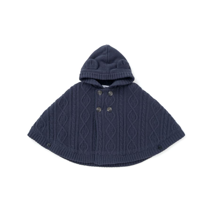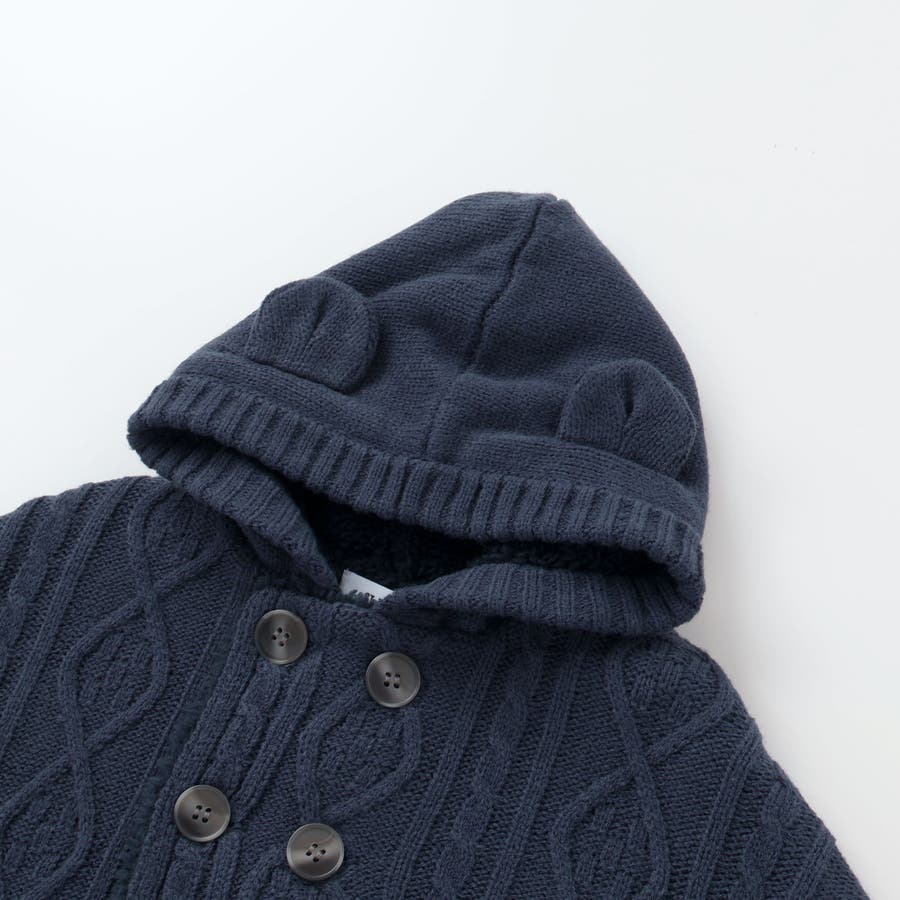 【お揃い】クマ耳フード付き裏ボアケーブルマントベビー(50~90cm)