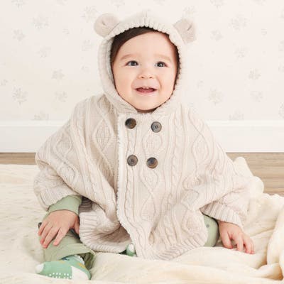 ケーブル編みがおしゃれなベビー用マント。