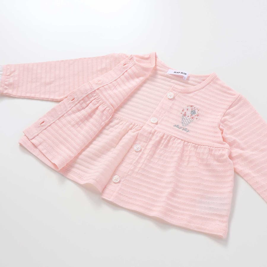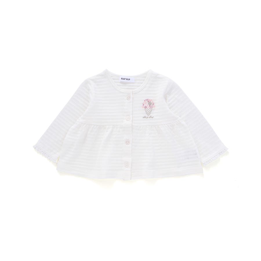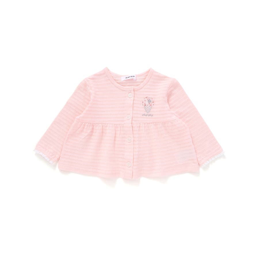 袖レース胸刺しゅう切り替え針抜きボーダーカーディガンベビー(70~80cm)