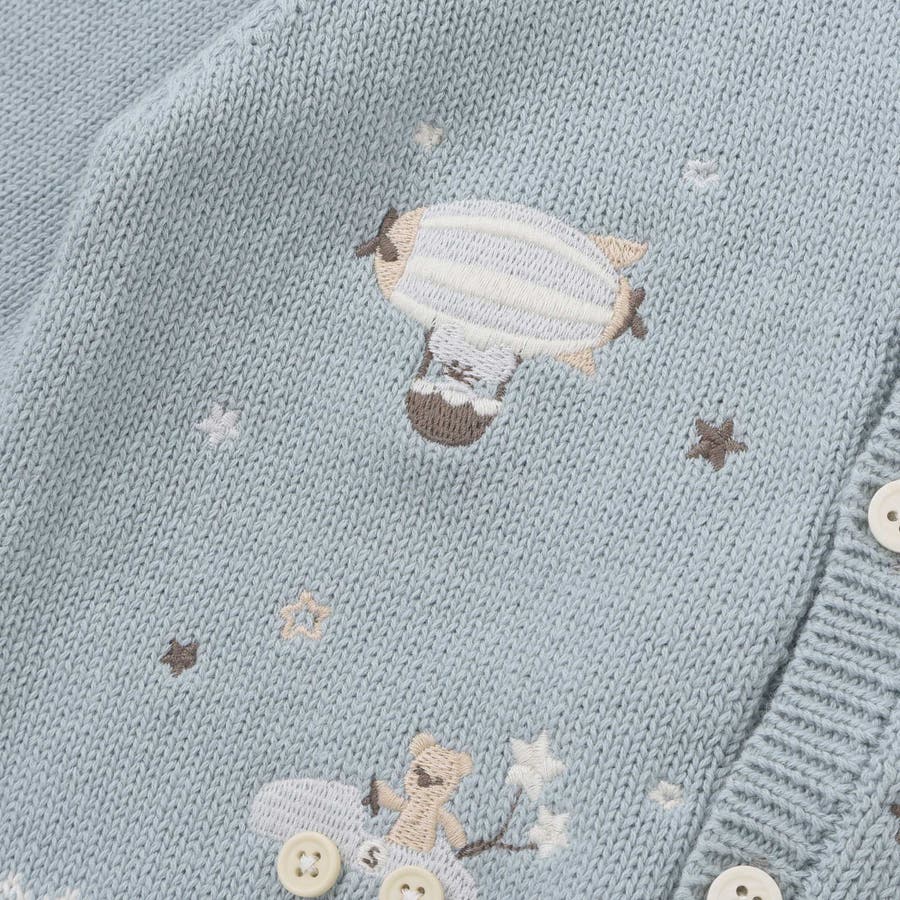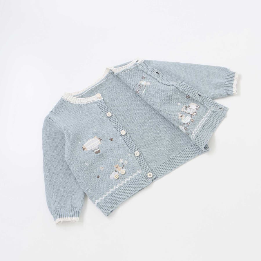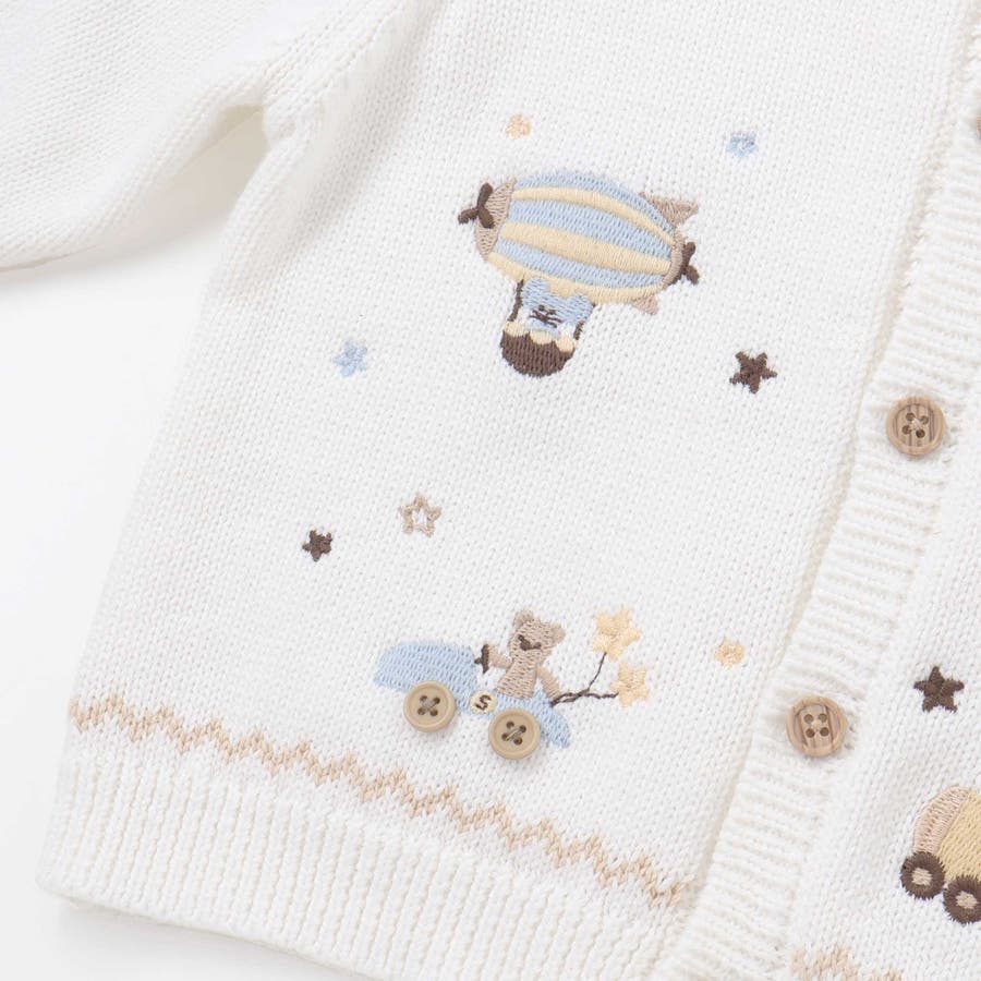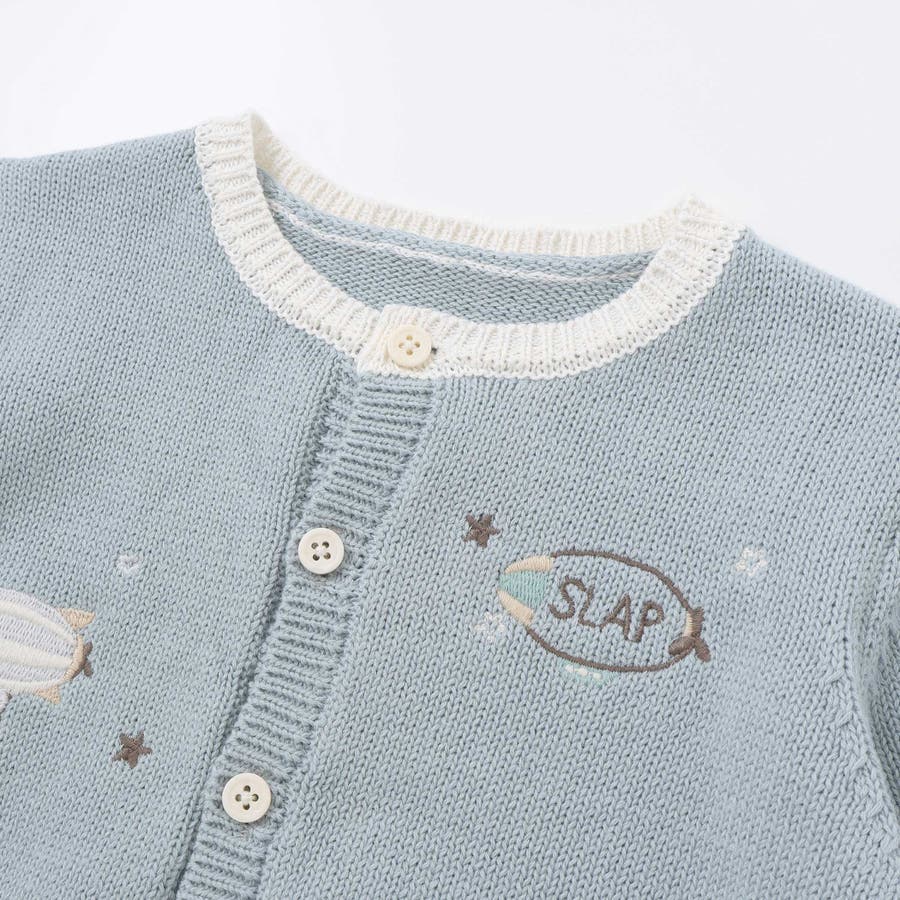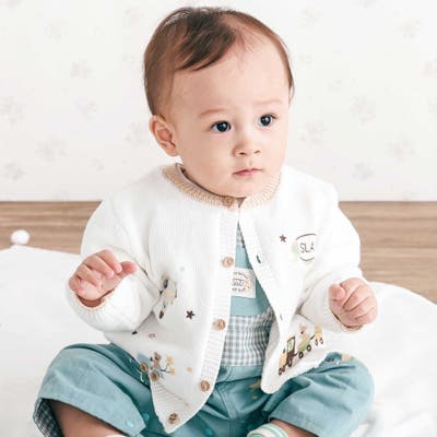 男の子にぴったりな、遊び心あふれるニットカーディガン。