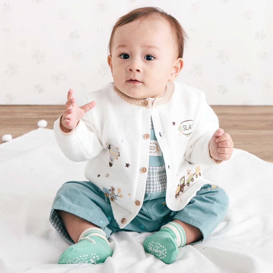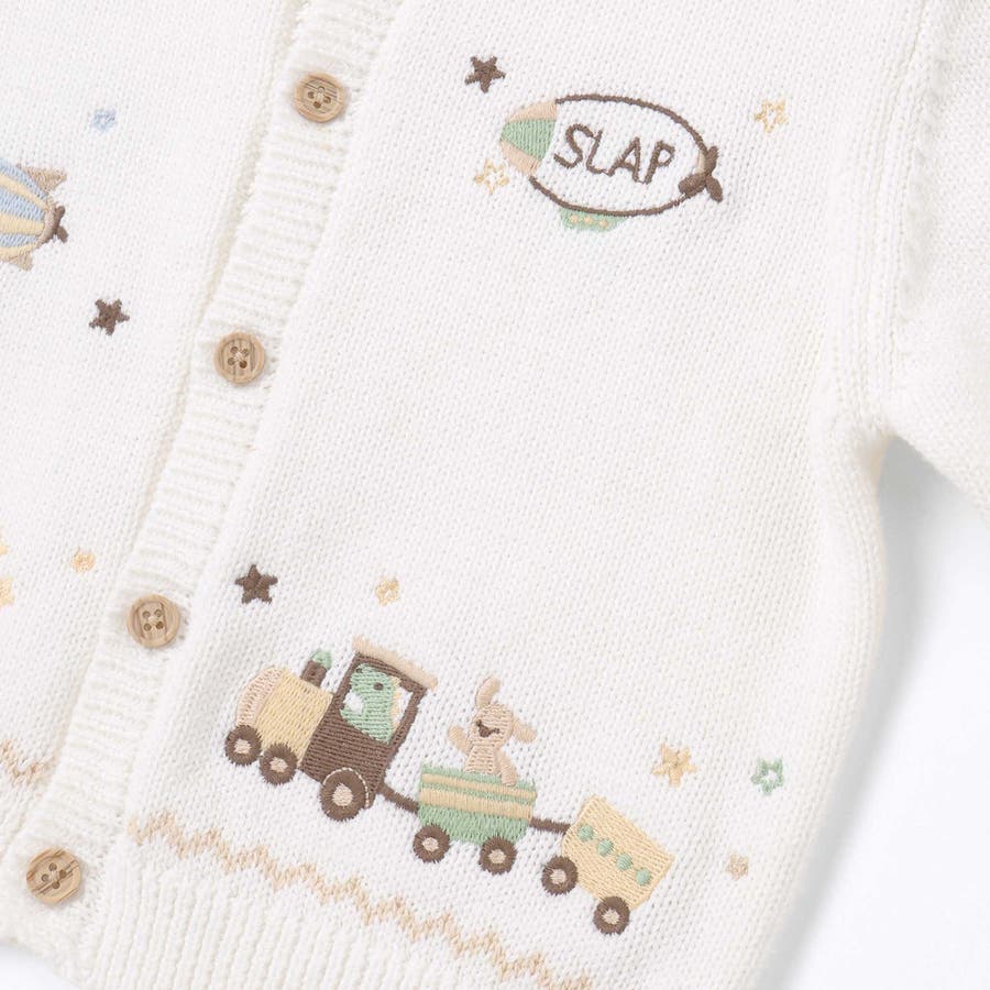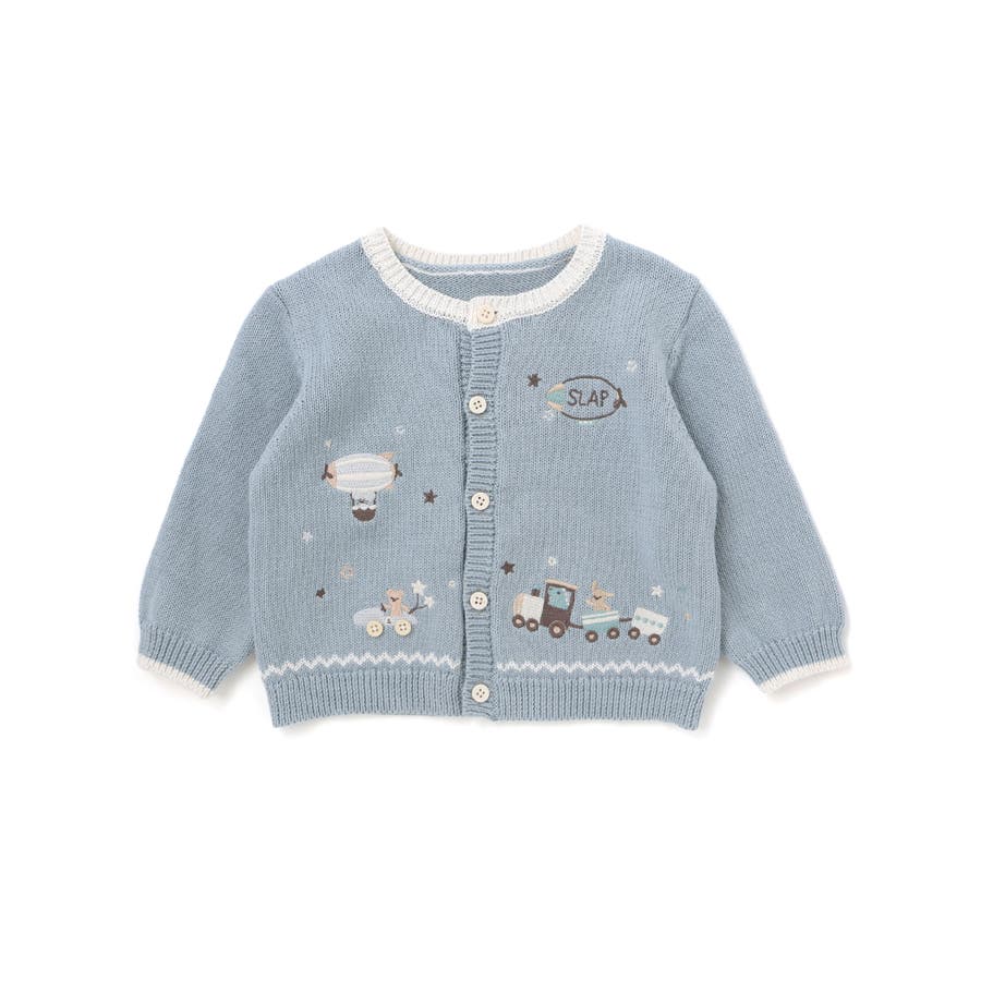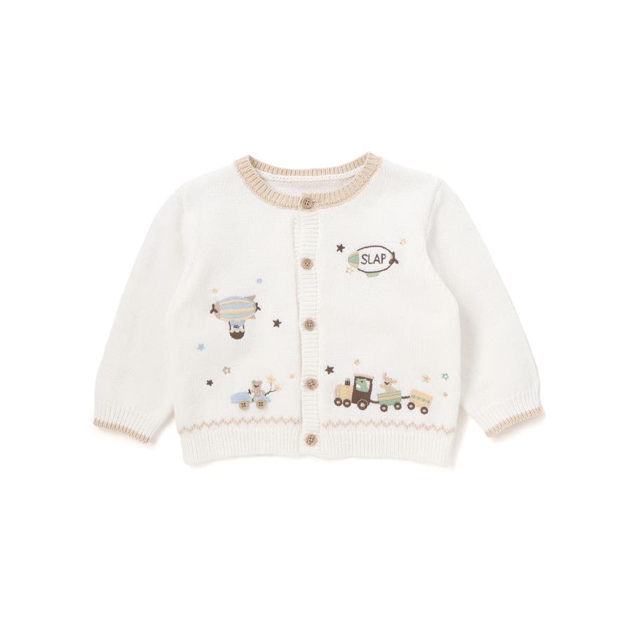 恐竜アニマルのりもの刺しゅう配色ニットカーディガンベビー(70~80cm)