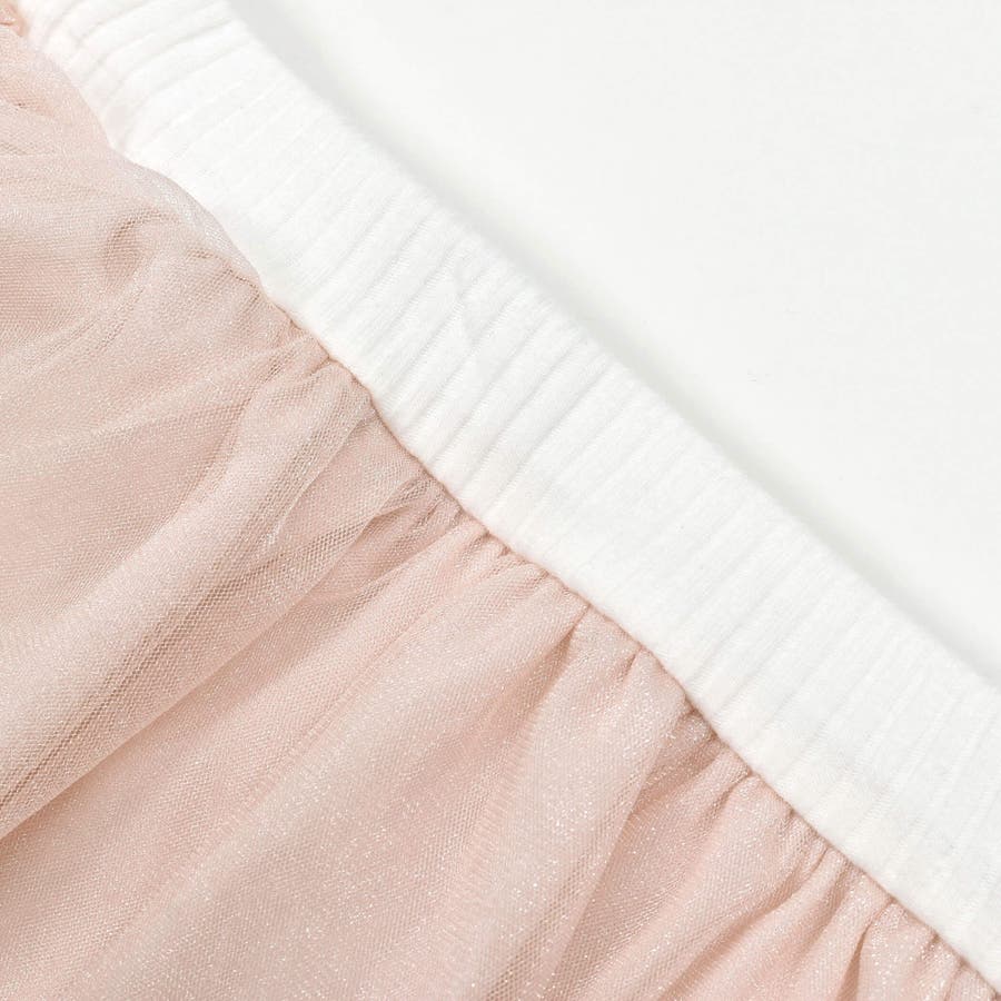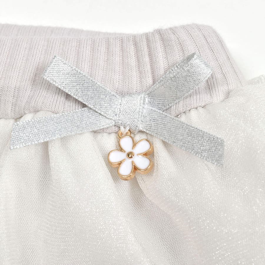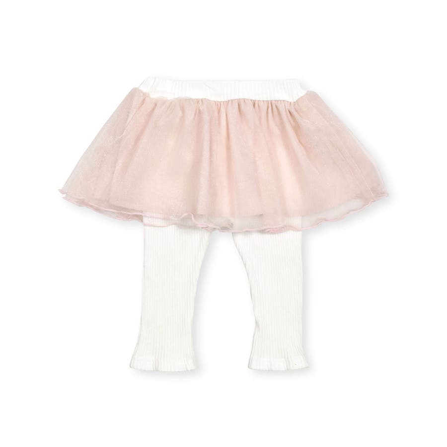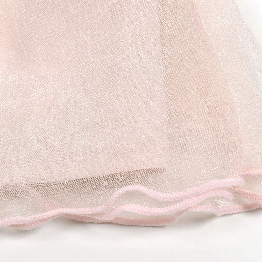 さりげなくキラキラするラメチュールを重ねたスカートはおねえちゃんがはいているみたいなフェミニンなデザイン。