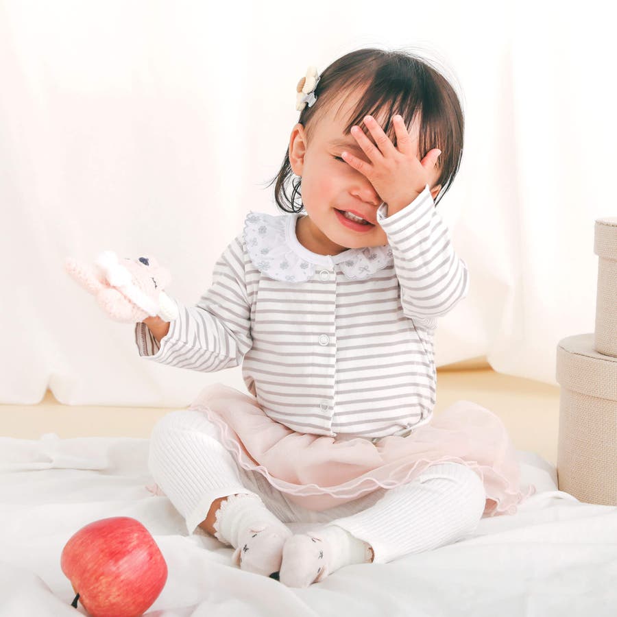 レギンス部分はテレコ素材で伸縮性もよくさらりとした肌触りでベビーもニコニコ。