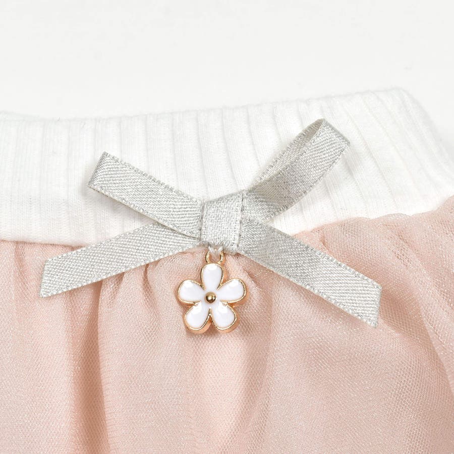 ウエスト部分にオンしたリボン+お花型のチャームがオシャレなアクセントに◎