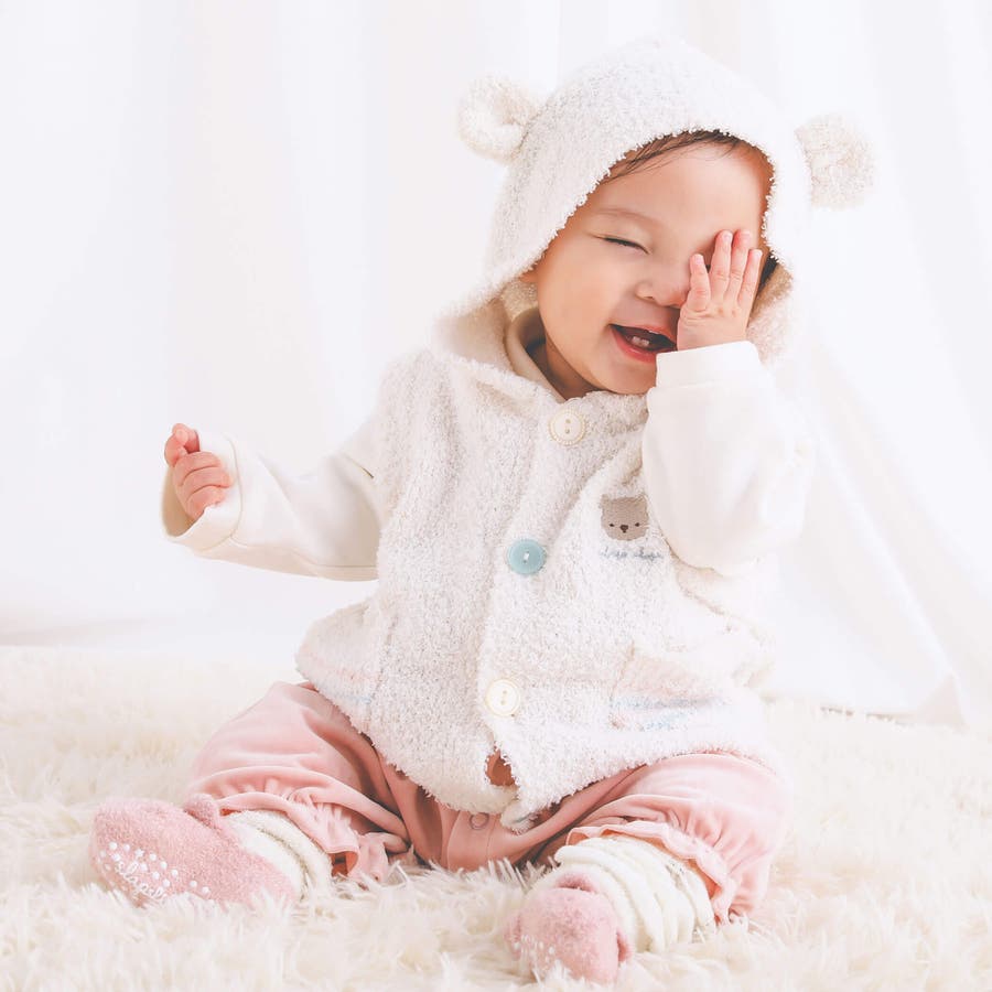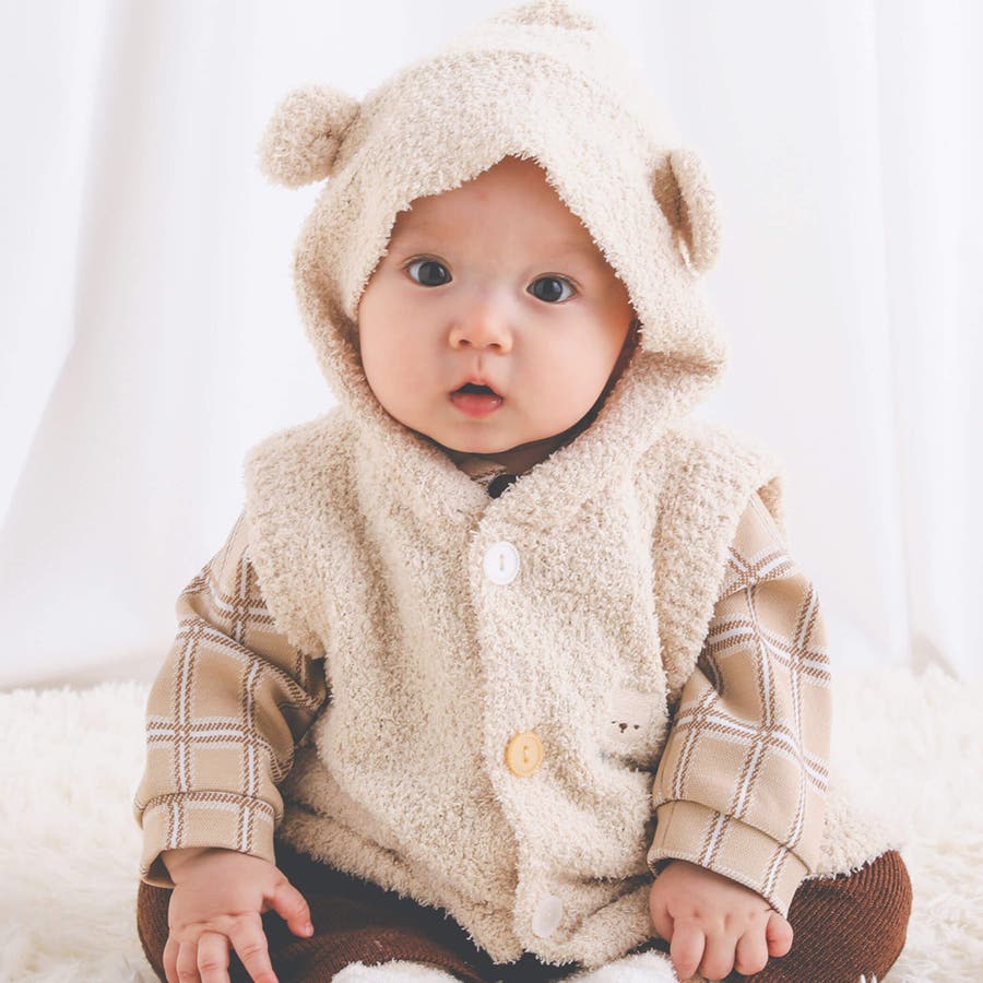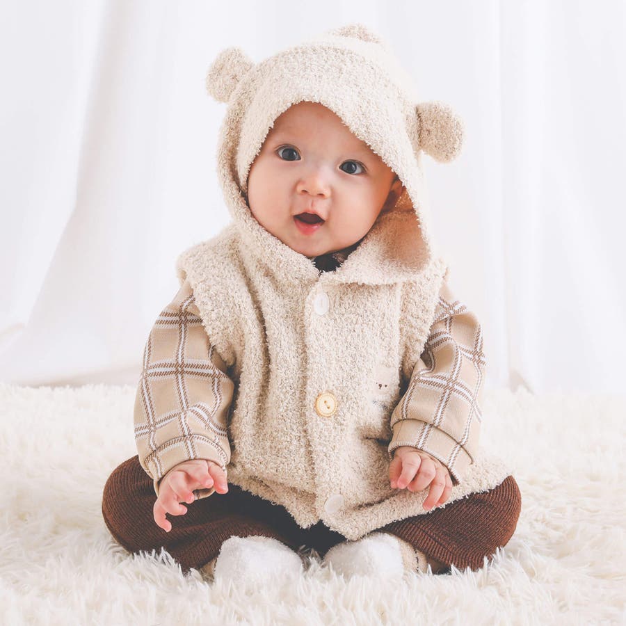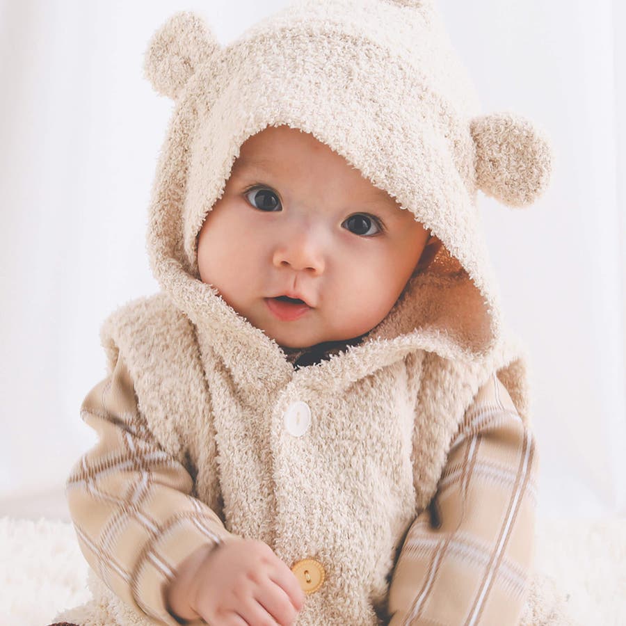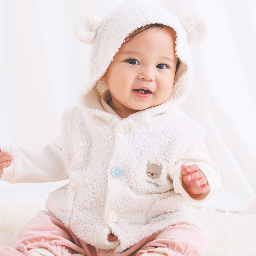 クマ耳付フードブークレニットベストベビー(70~80cm)