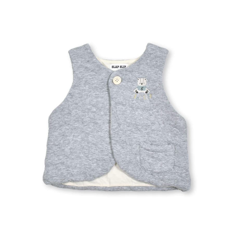 【お揃い】クマさんシルエットキルト胸元刺しゅうベストベビー(70~80cm)