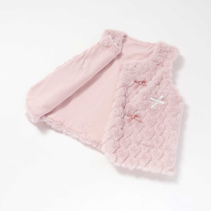 【お揃い】リボンいっぱいハート柄ファーベストベビー(70~80cm)