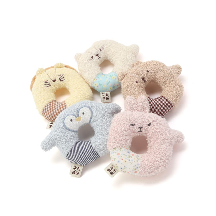【お揃い】アニマルクマウサギペンギンライオンネコモチーフドーナツ型ラトルベビー