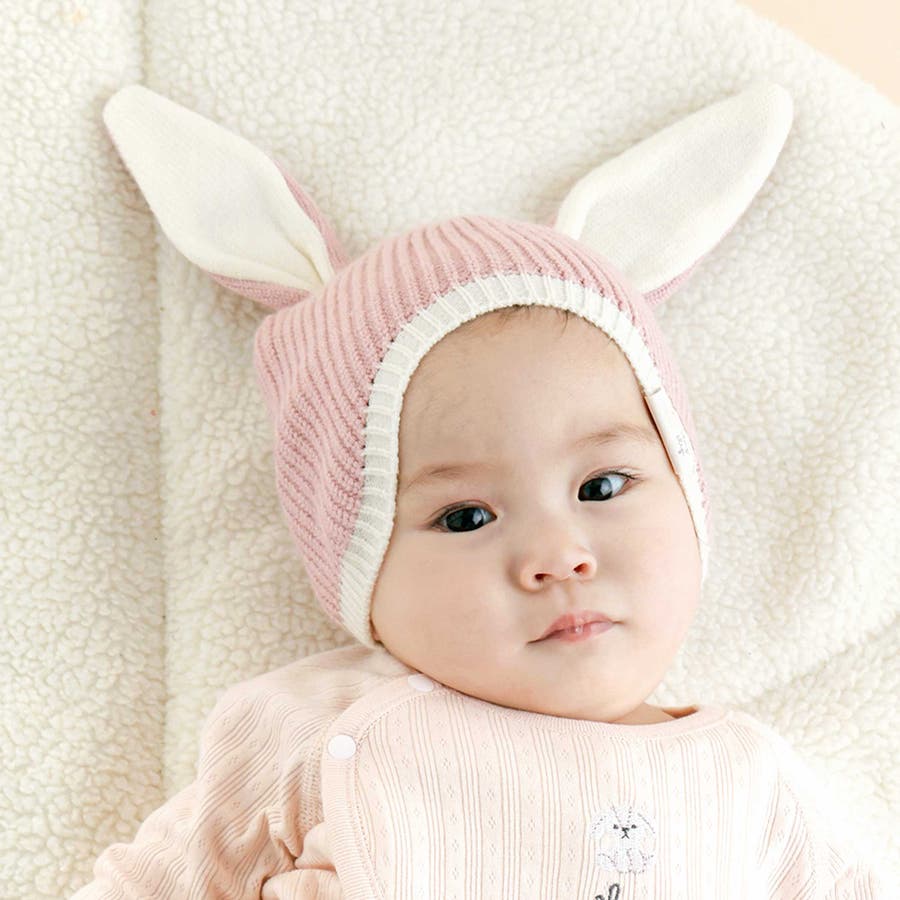 ピンク:ニット素材のウサギさんの耳