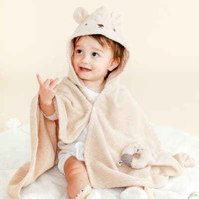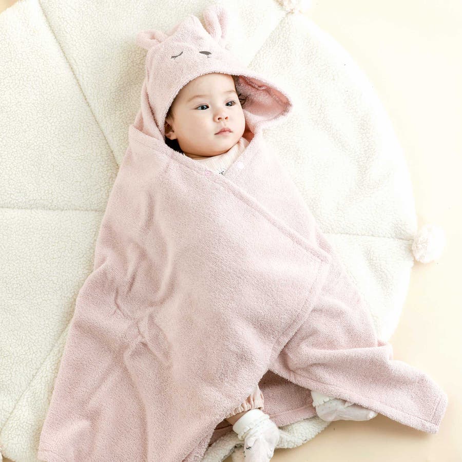 触り心地のいいパイル素材を使用した男の子にも女の子にもオススメなおくるみ。