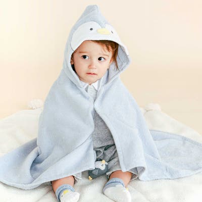 【お揃い】アニマルクマウサギペンギンモチーフお顔フードおくるみベビー