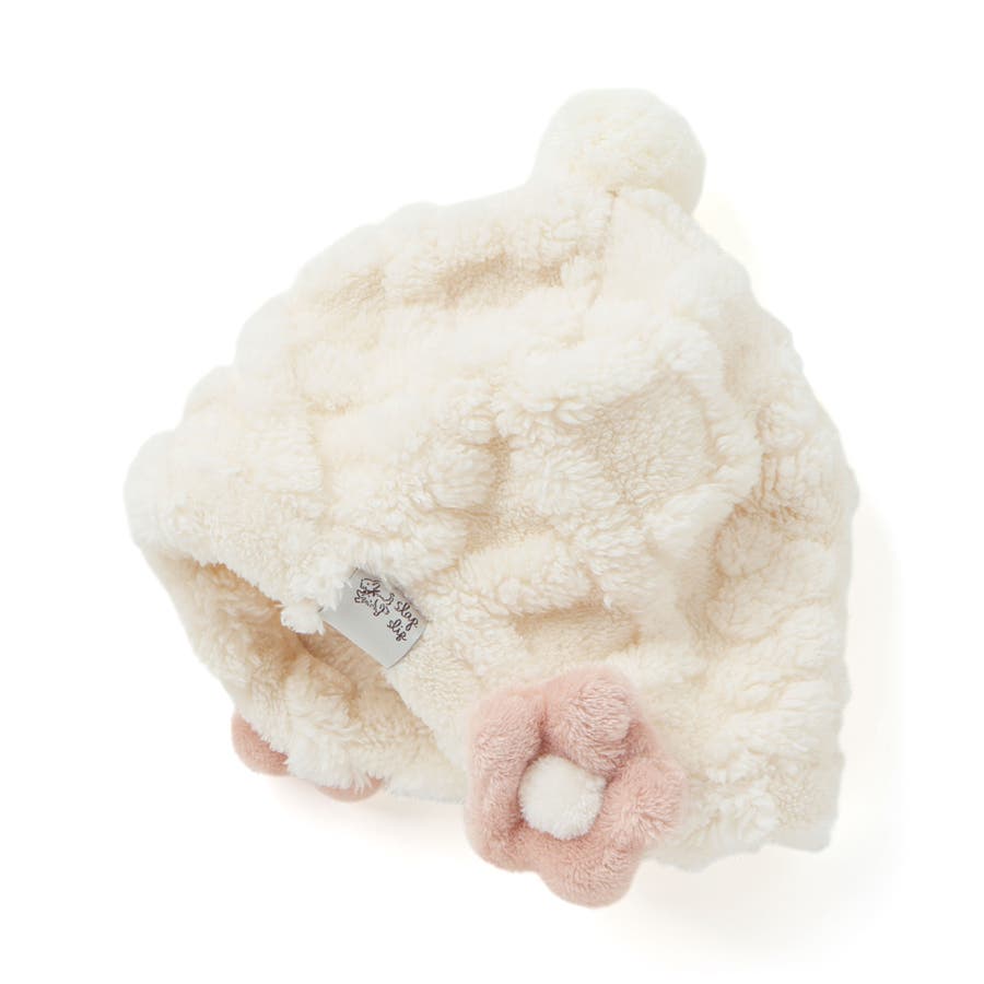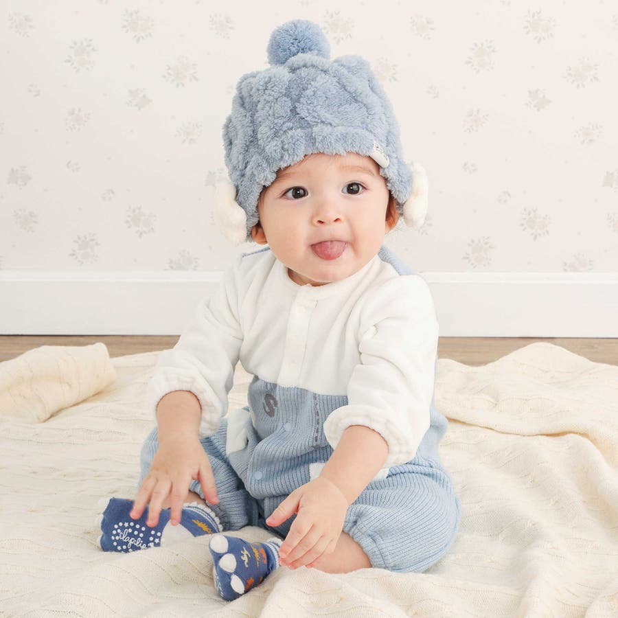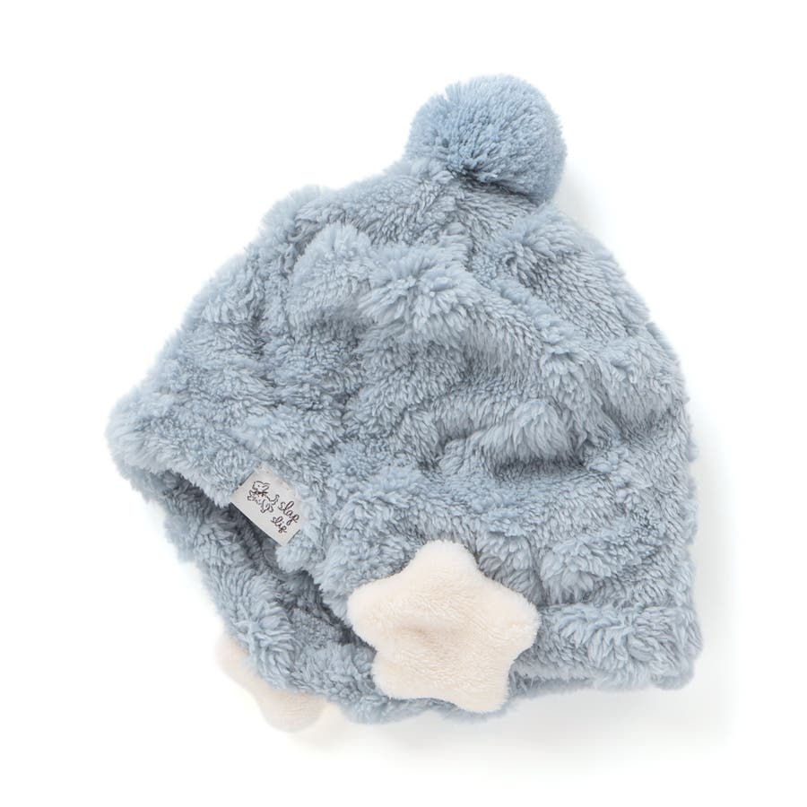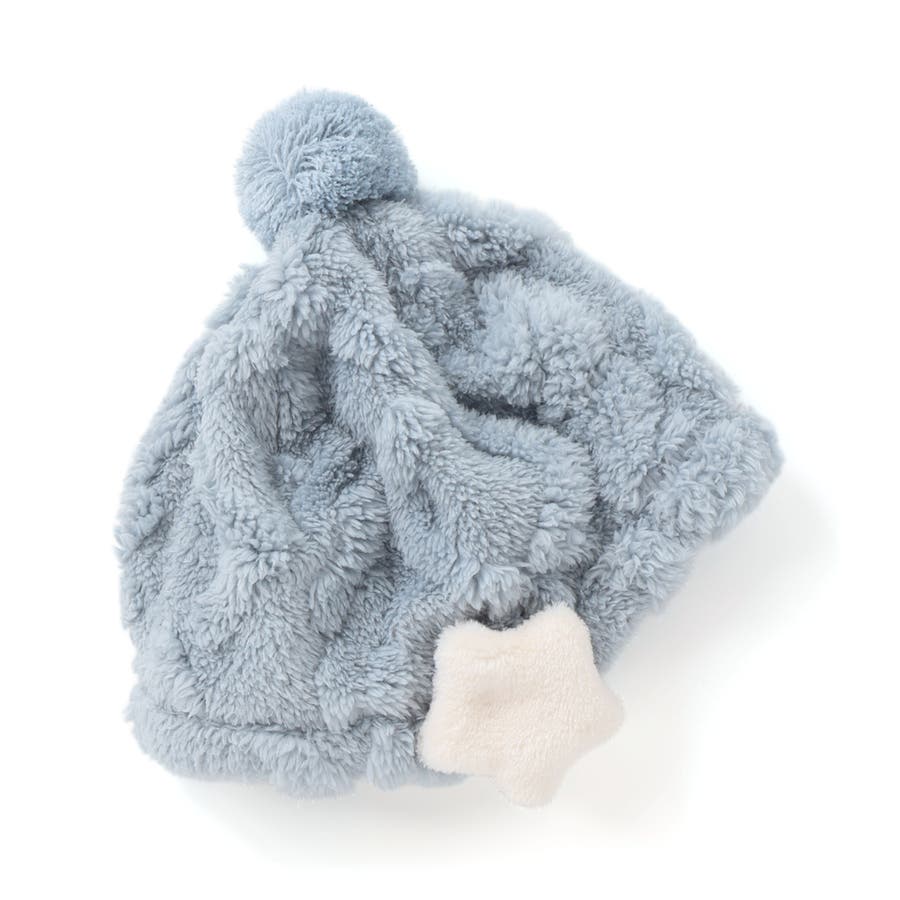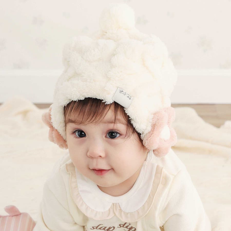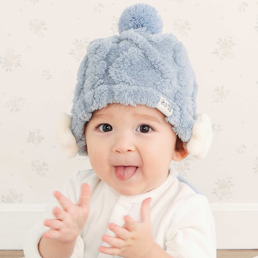 花星フワフワモチーフ耳当て付きボンボンニット帽ベビー