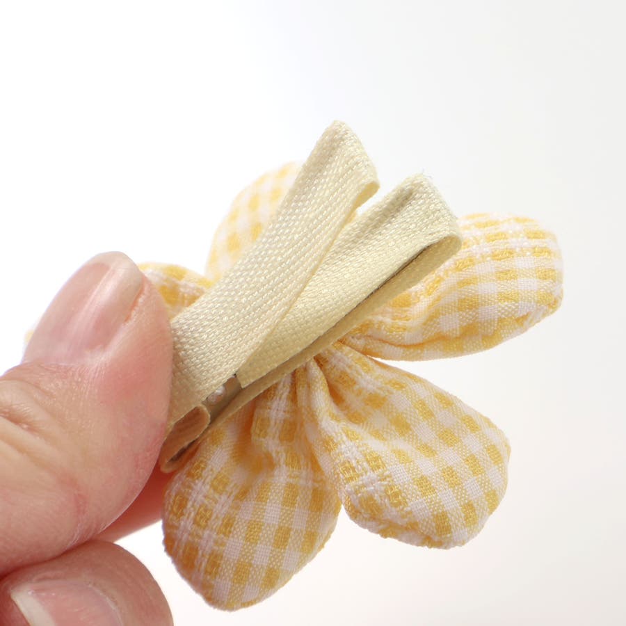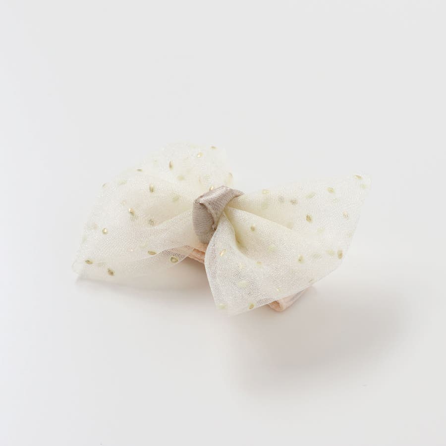 グログランリボンをクリップ部分に使用して肌にあたっても痛くないようにしました。