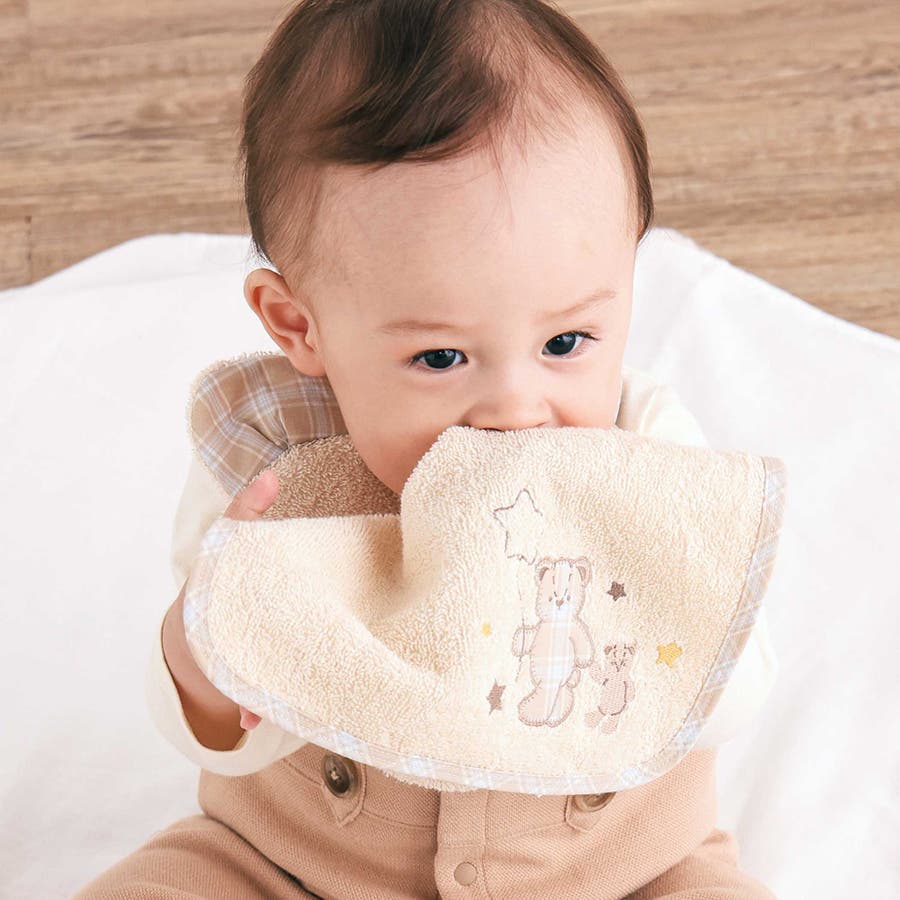 吸水性の良いパイル素材は汗拭きにもよだれ拭きにも活躍し、何枚あってもうれしい!