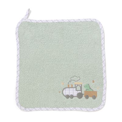 グリーン:モクモク煙が出ている汽車に乗った恐竜さん、POPなカラーで遊び心たっぷり。