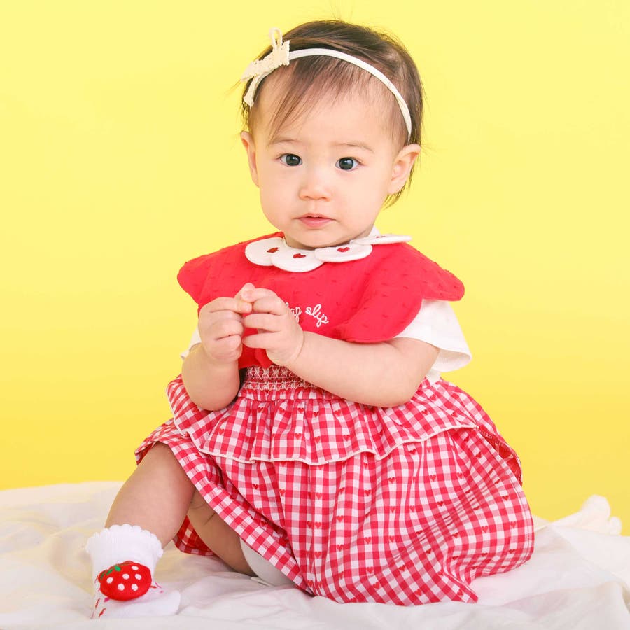スタイとしてだけでなく、付け襟感覚で楽しめるデザインだからシンプルなロンパースに合わせるだけで、コーディネートが完成☆