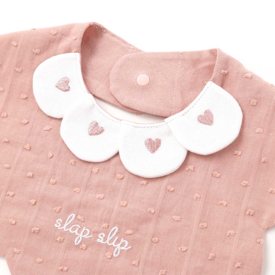 花びらが重なったような襟が目を引く、女の子用スタイ。