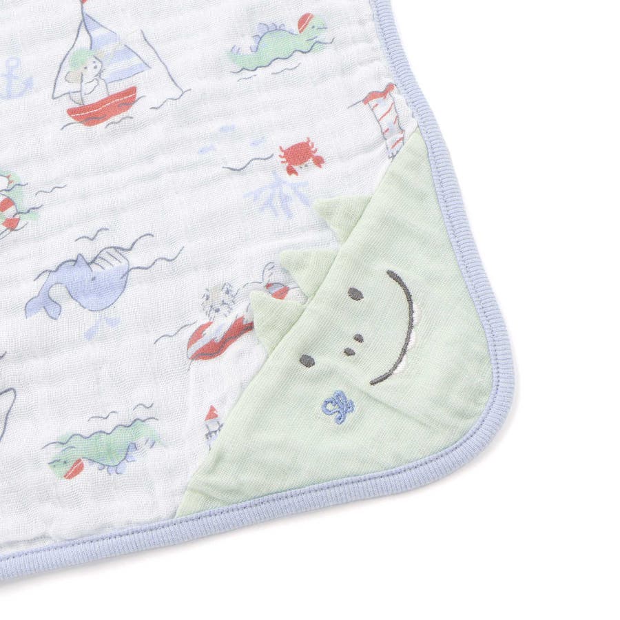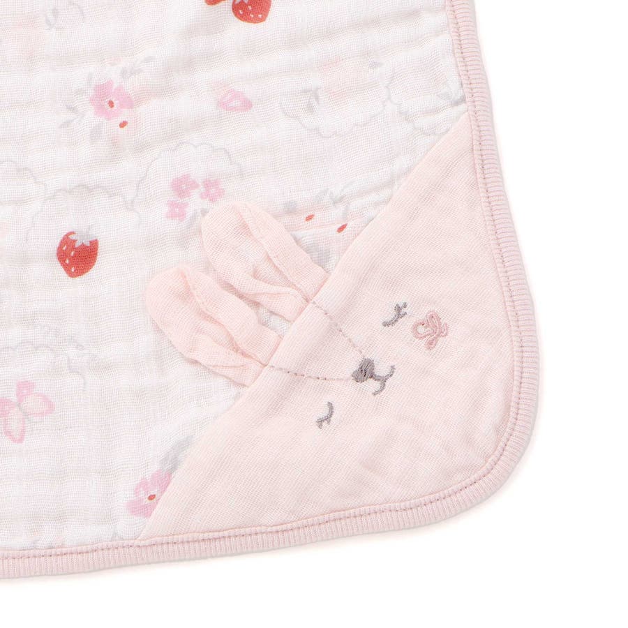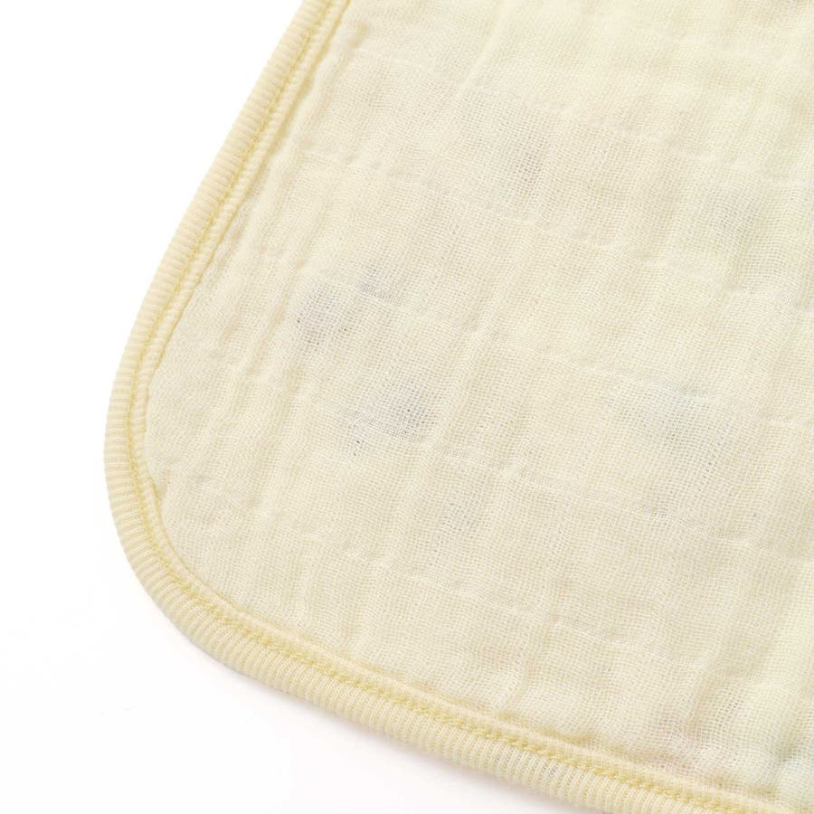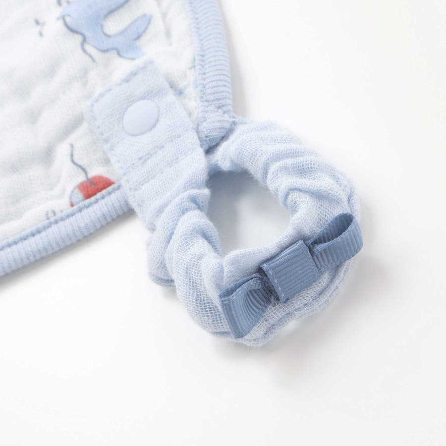 素材にはダブルガーゼを一枚仕立てにした生地を使用し、軽やかで通気性がよく、デリケートな赤ちゃんの肌にもやさしい使い心地です。