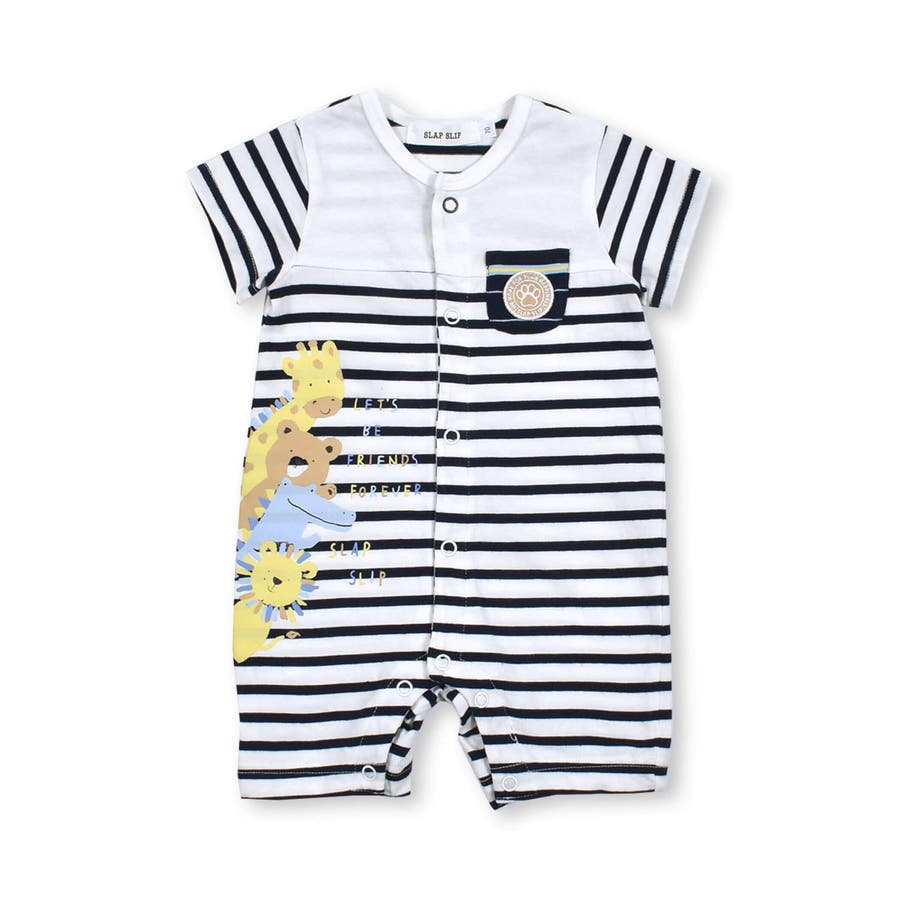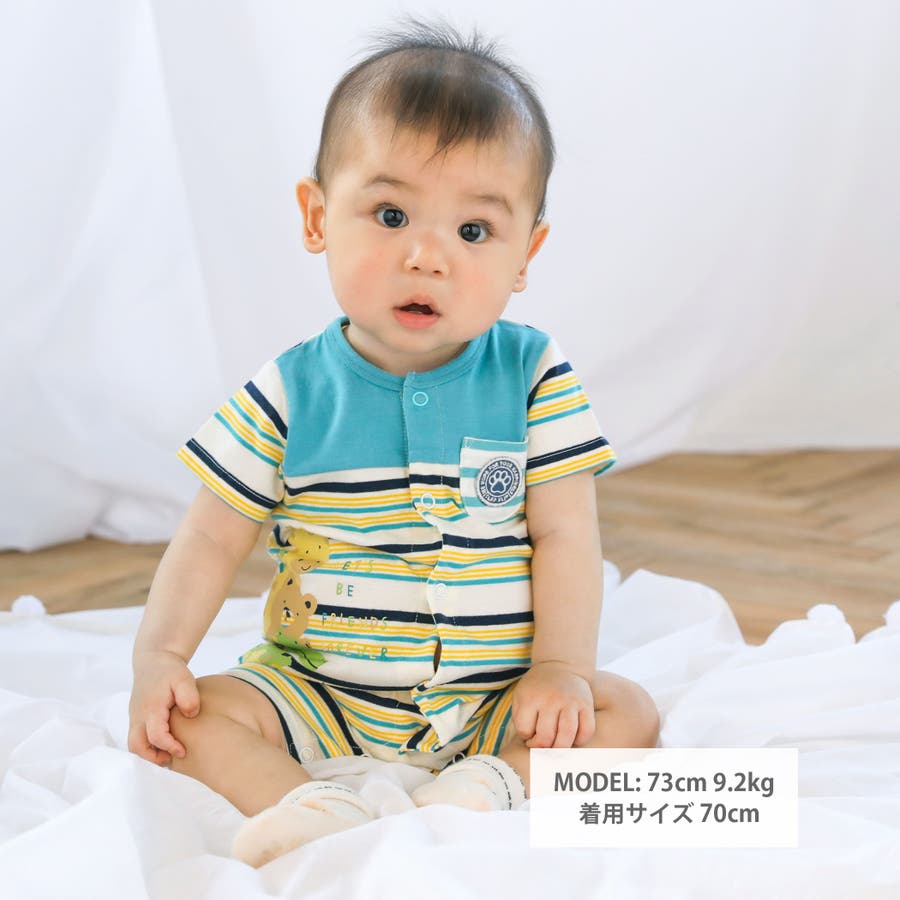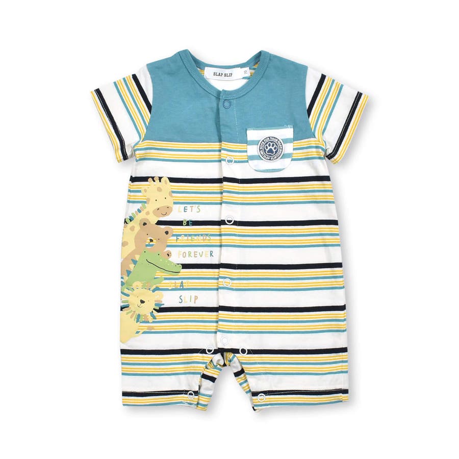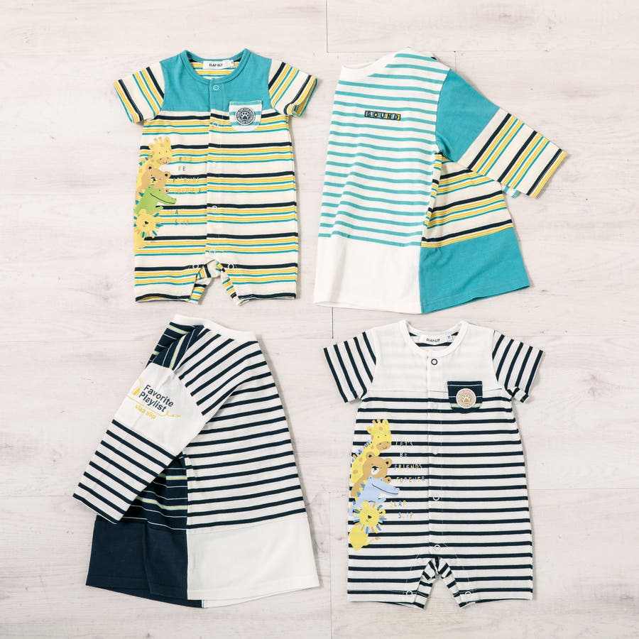 【お揃い】アニマルプリントマルチボーダー半袖ロンパースベビー(60~80cm)