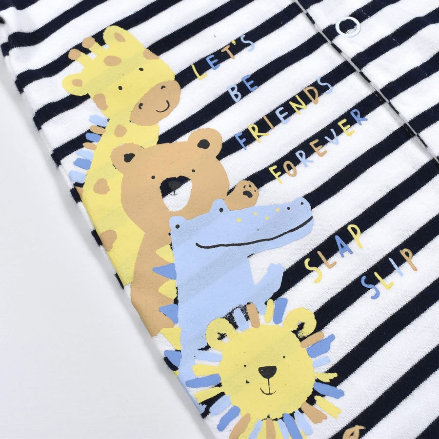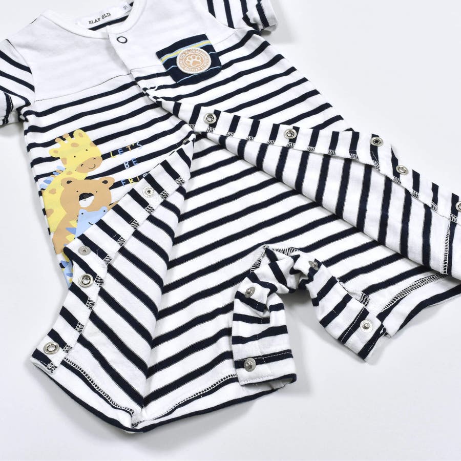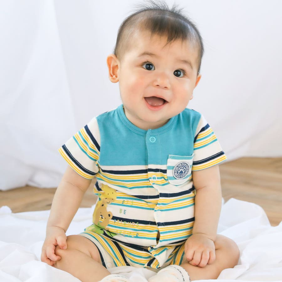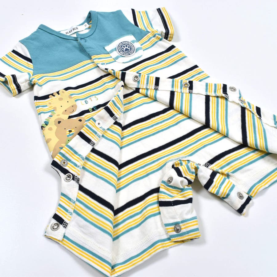 【お揃い】アニマルプリントマルチボーダー半袖ロンパースベビー(60~80cm)