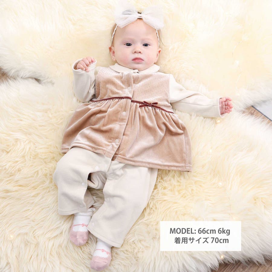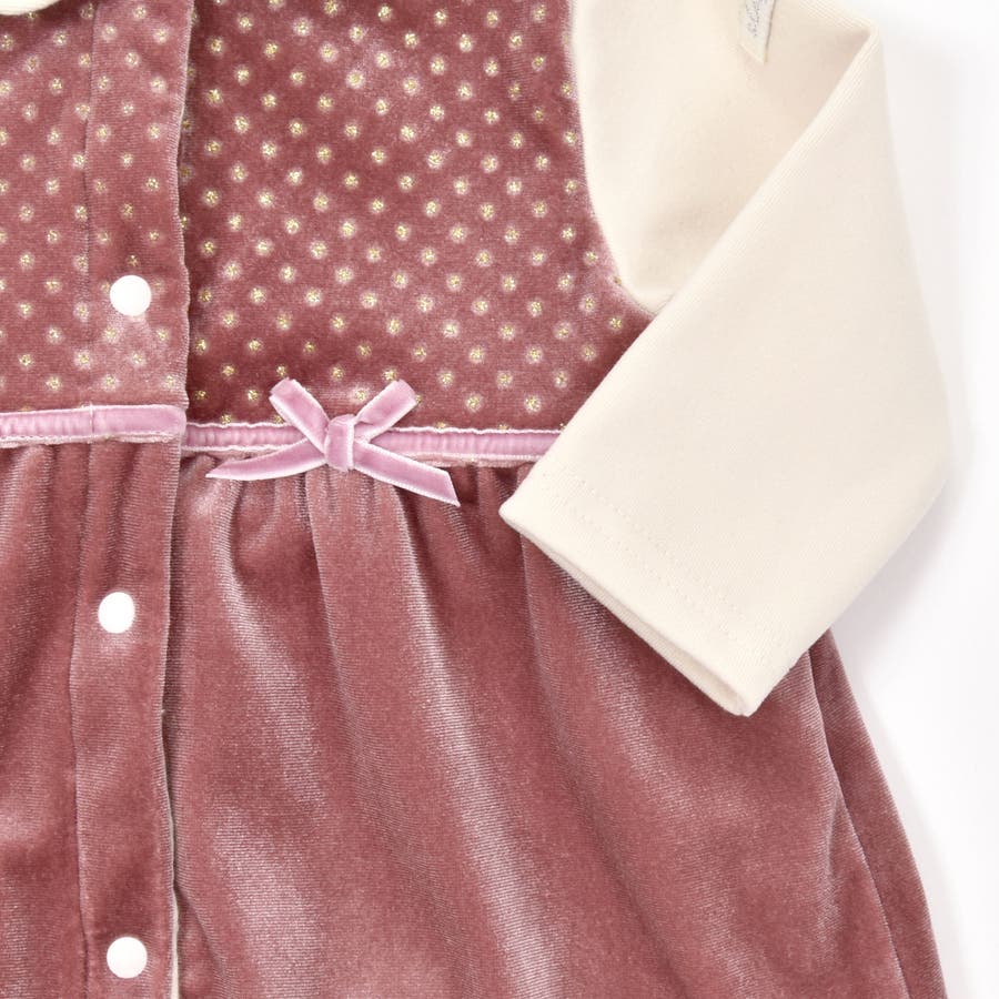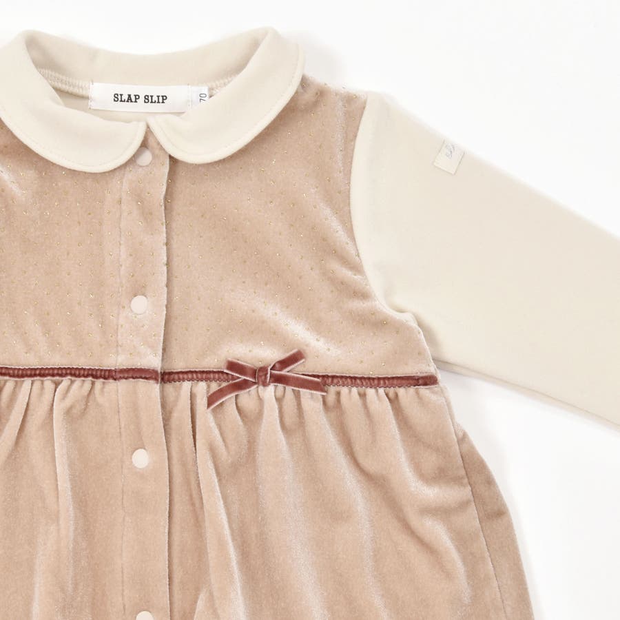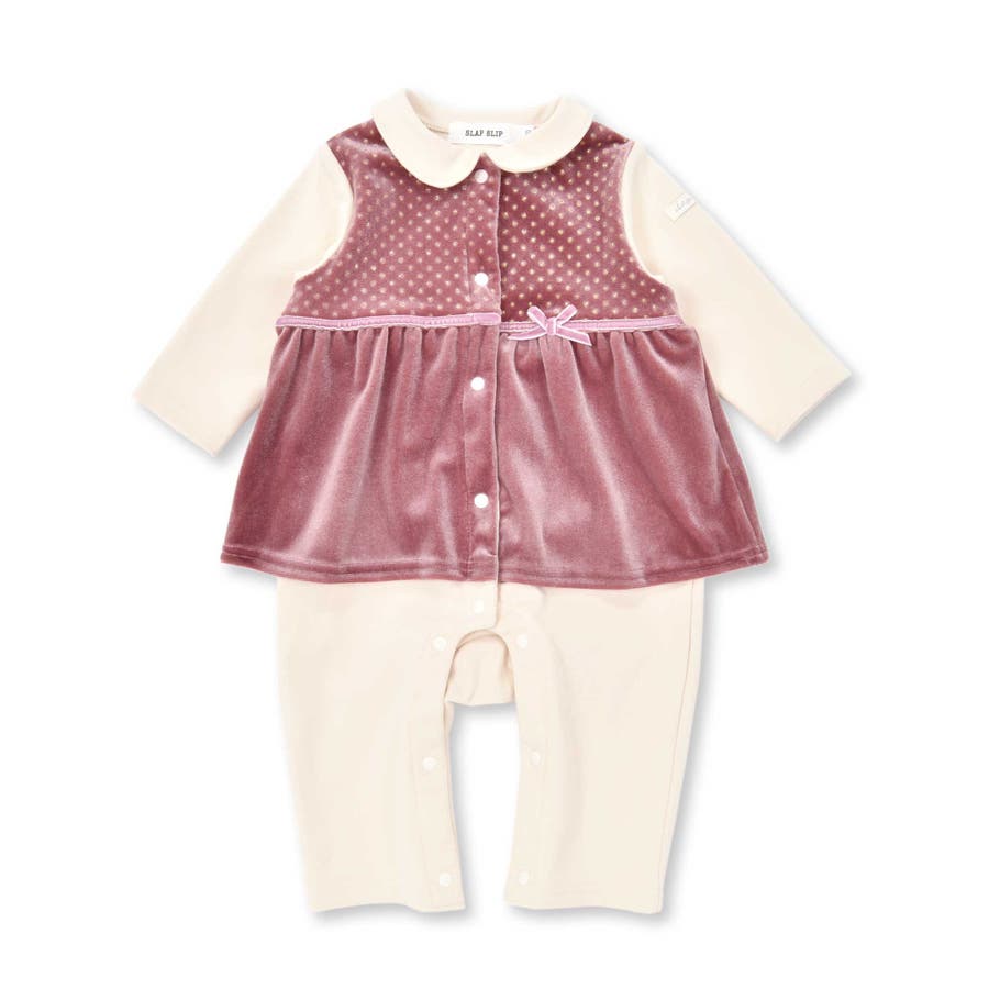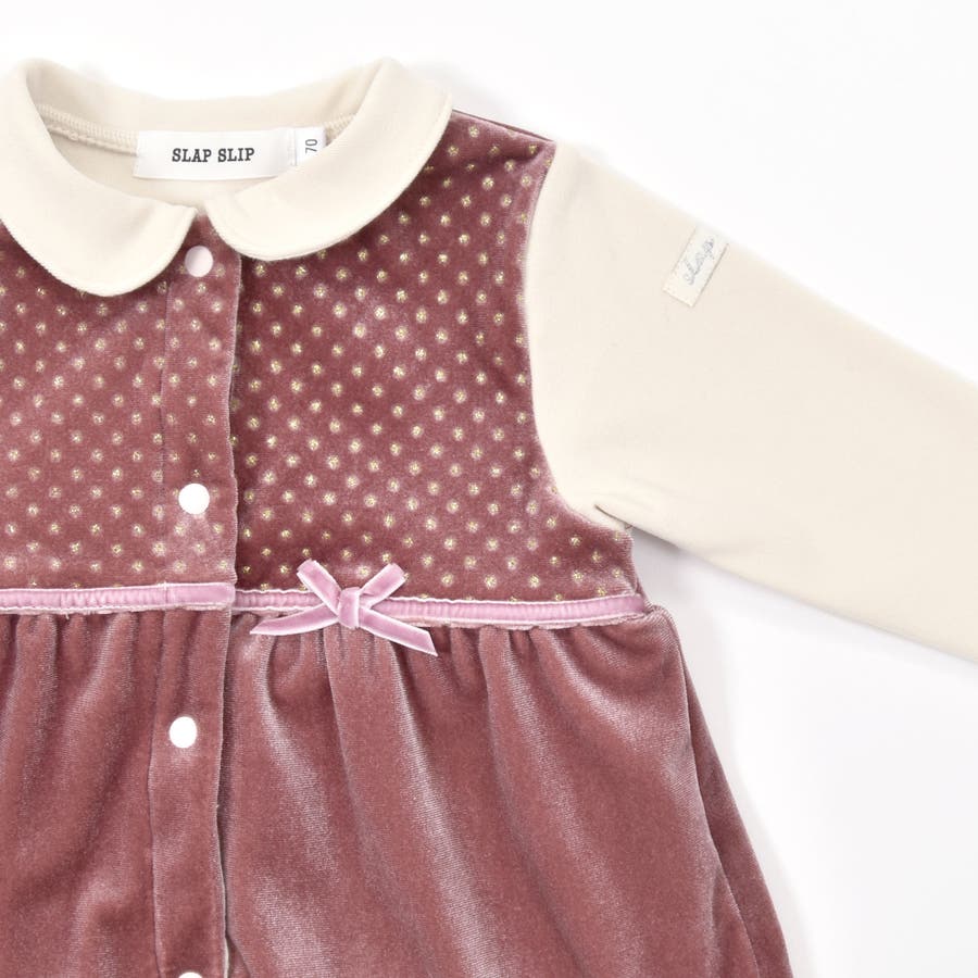 ドット柄ラメプリントベロア切り替えロンパース(70~80cm)