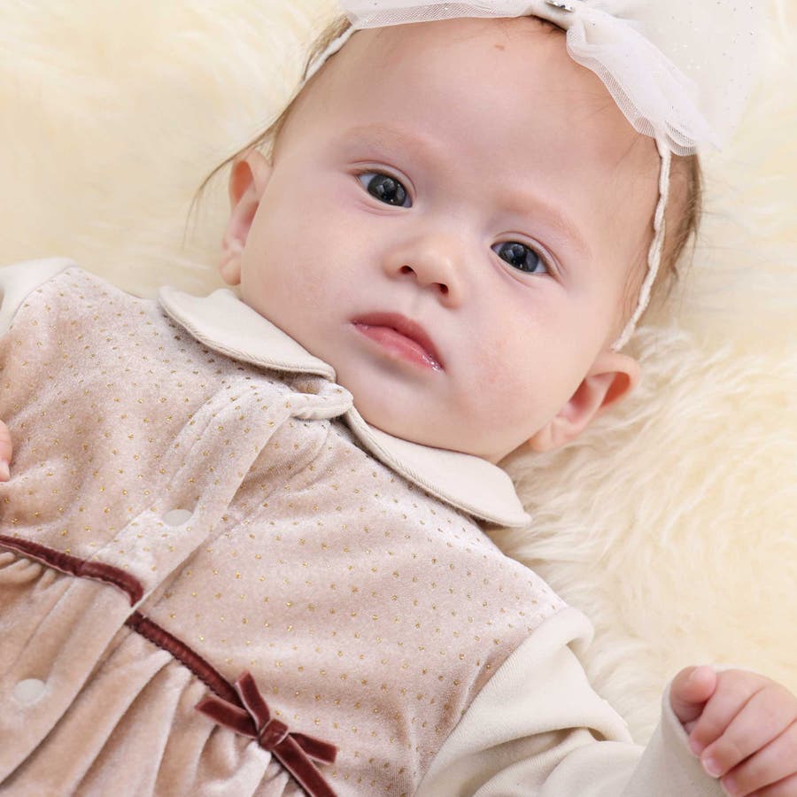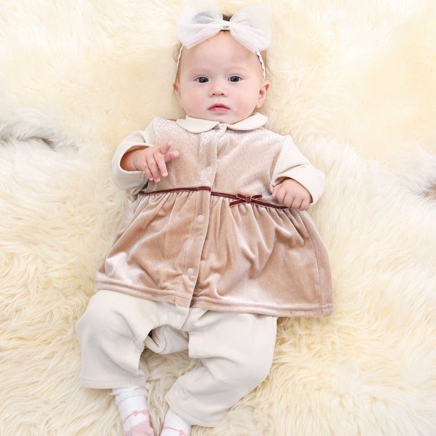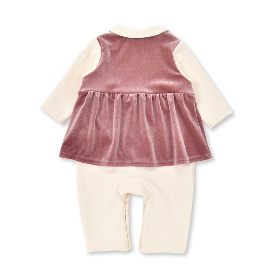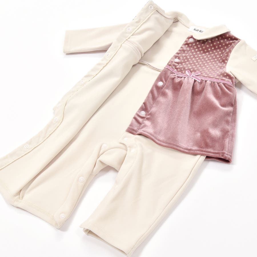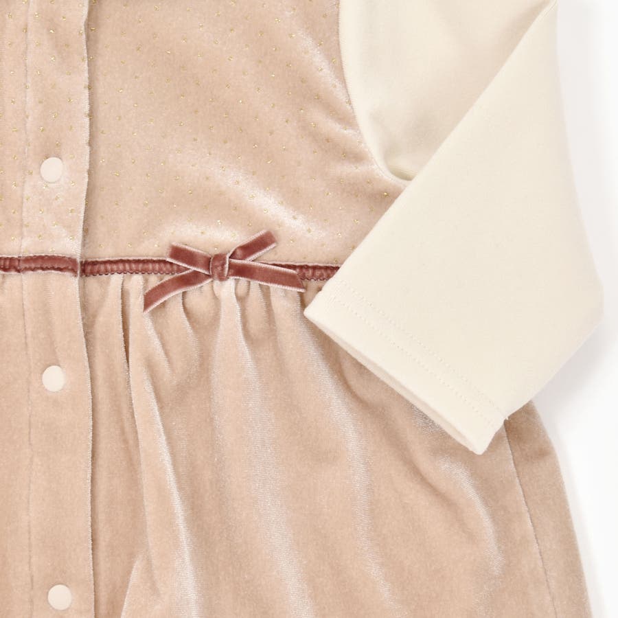 ドット柄ラメプリントベロア切り替えロンパース(70~80cm)