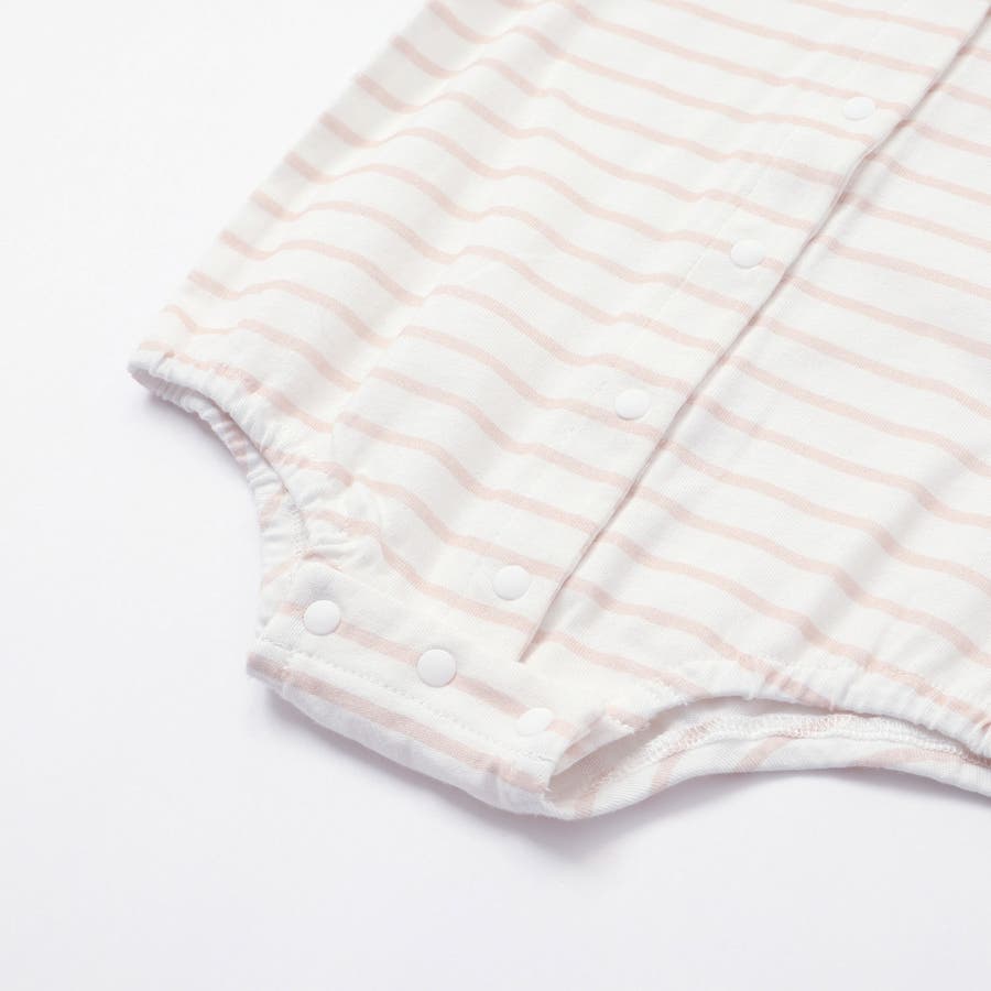 スナップボタンで全開になるので、首が座る前の赤ちゃんに着せやすく、新米ママにもおすすめ!