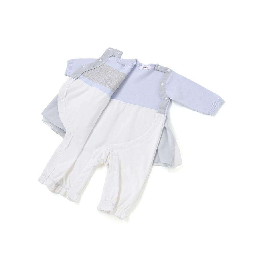 ふんわり柔らかなニット素材を使用した、女の子ベビー用長袖ドッキングカバーオール。