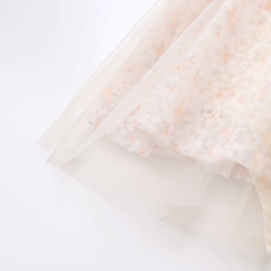 スカート部分は花柄の中スカートにふんわりチュールを重ねたデザインで、ボリューム感たっぷり。