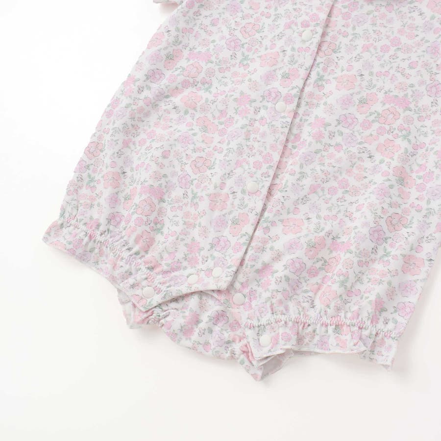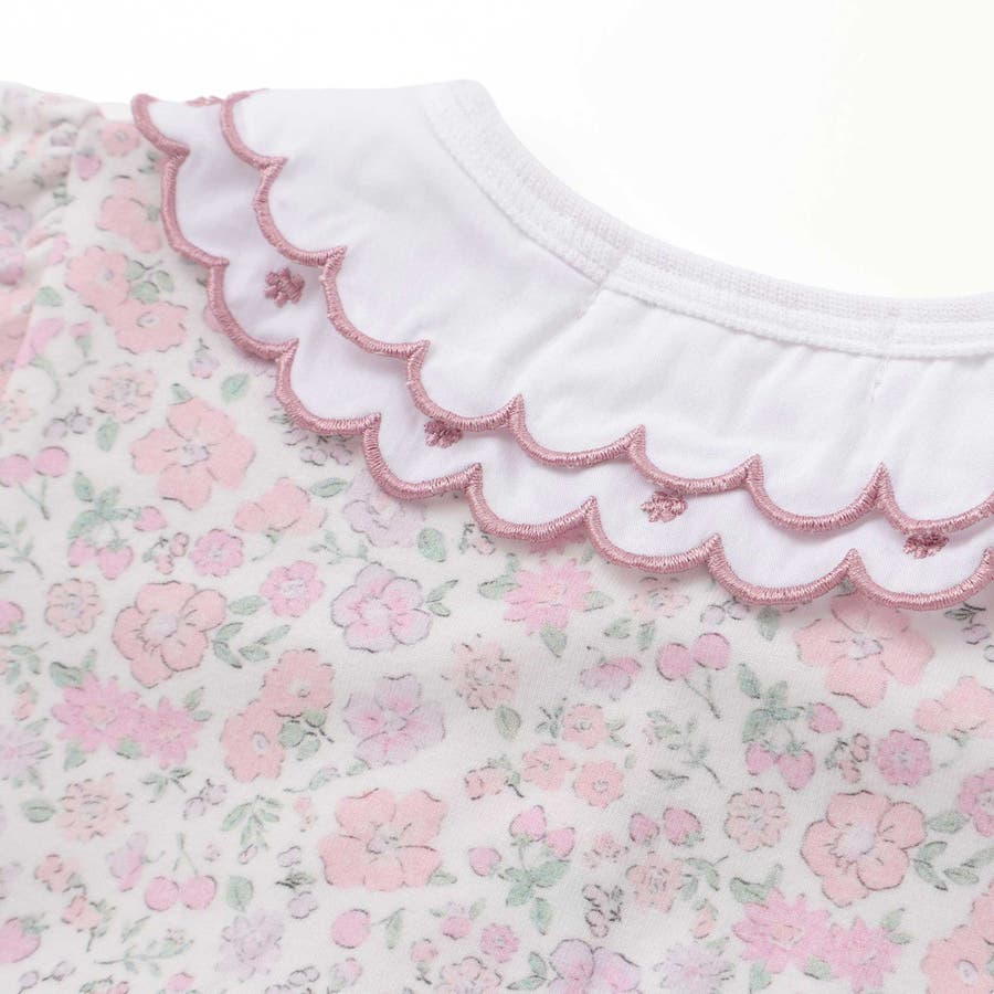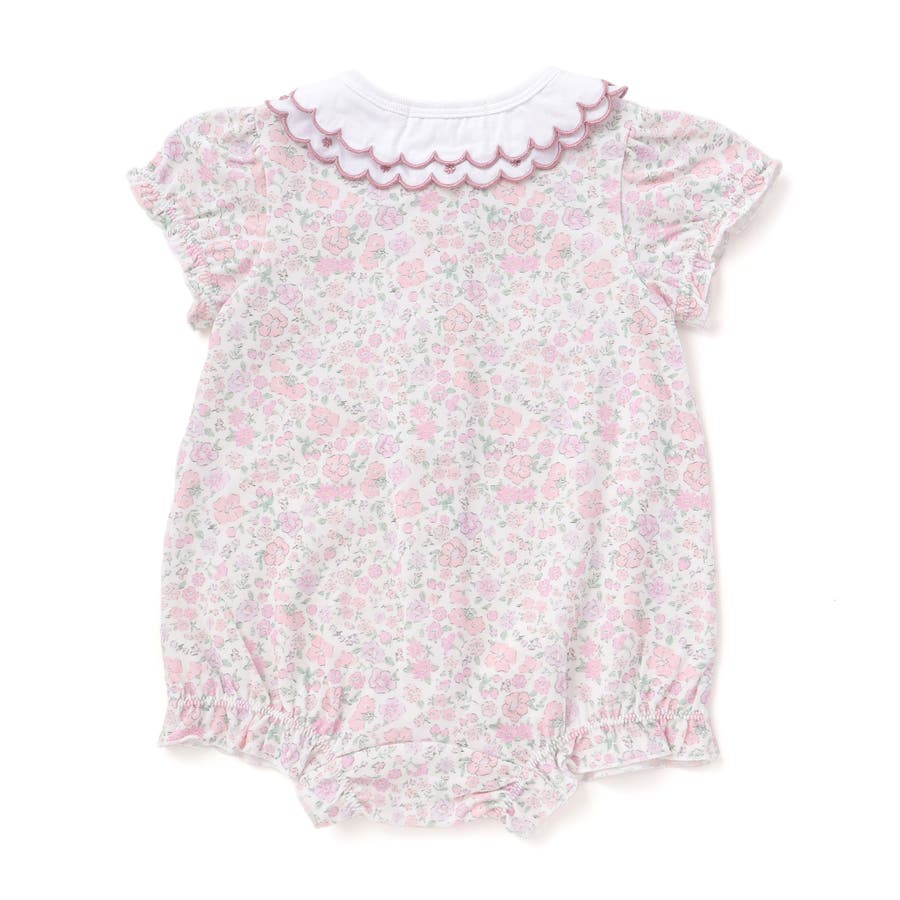 【お揃い】プリント総柄重ね襟付き半袖ロンパースベビー(60~80cm)