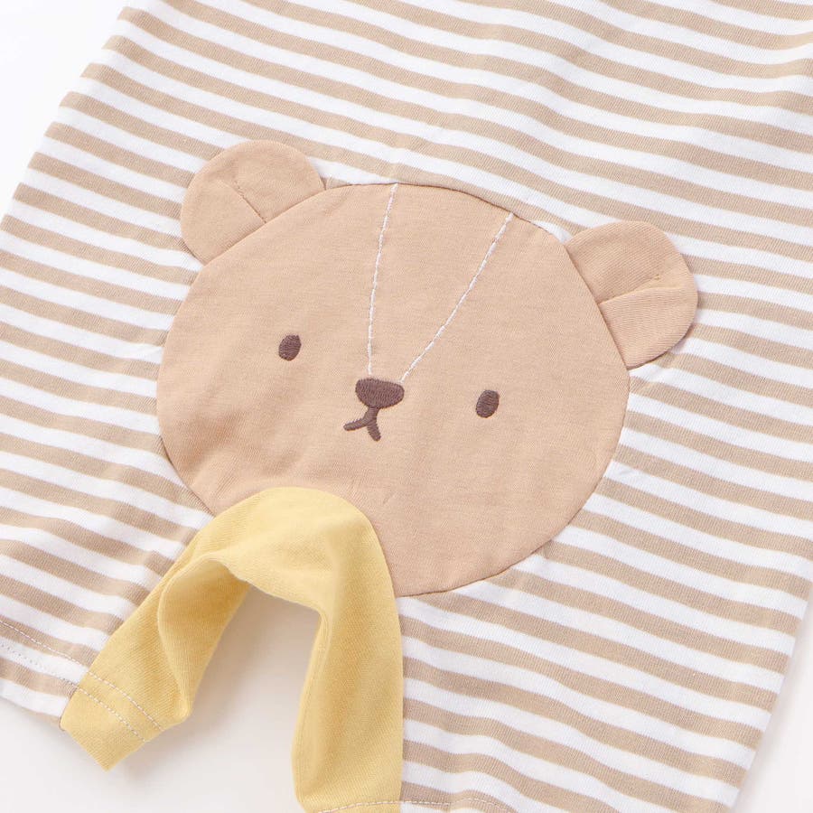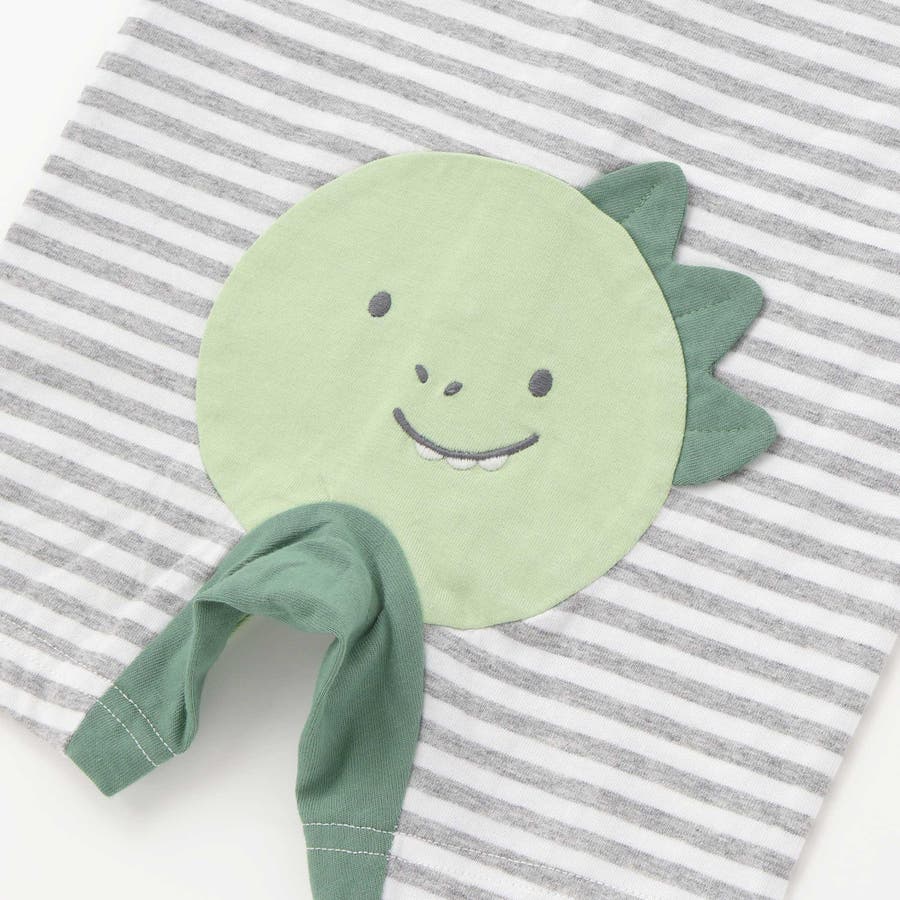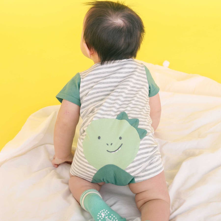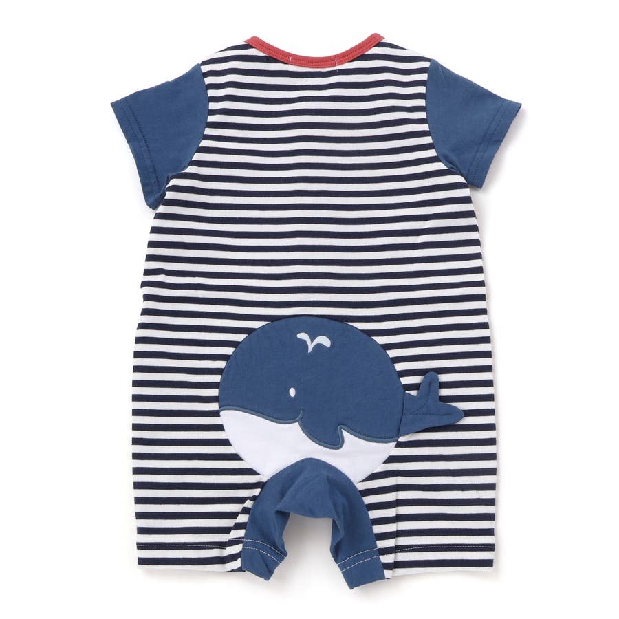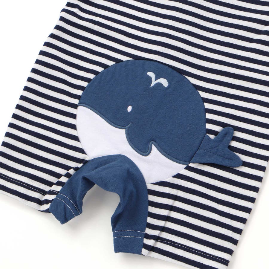 くじらクマ恐竜アニマルおしりモチーフボーダー切り替えロンパースベビー(60~80…