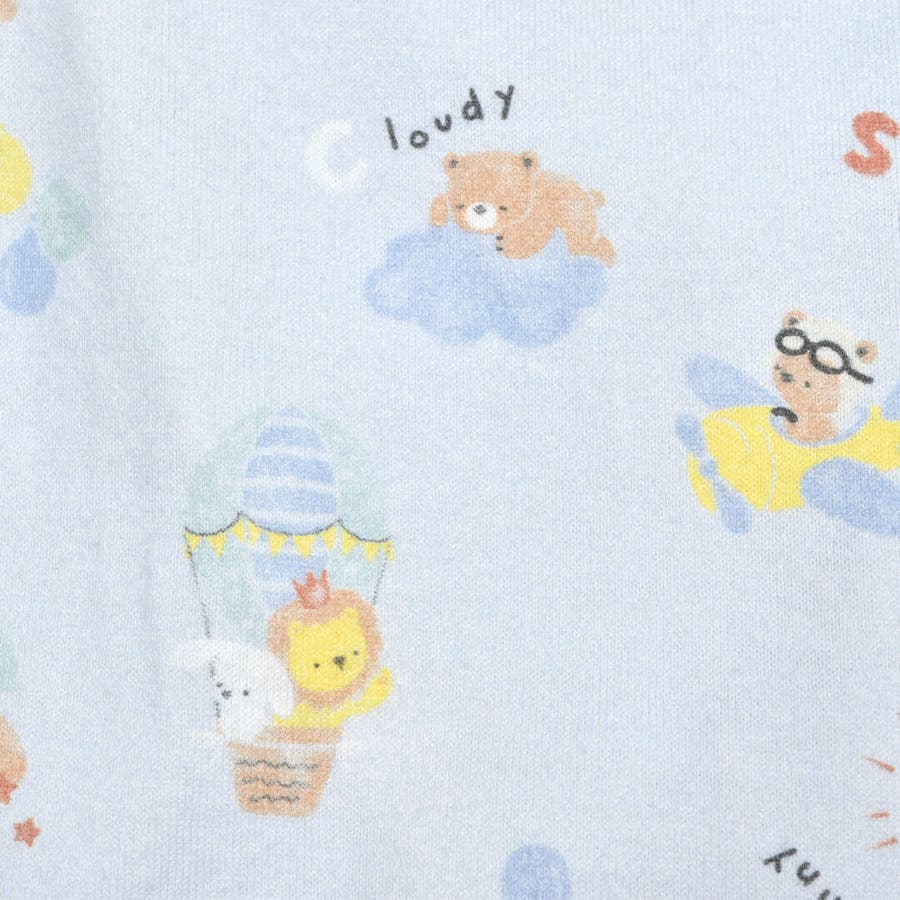 オフホワイト系・ブルー系:雲や飛行機に乗ったクマさんの中に気球に乗ったライオンさん&ウサギさんもいるから探してみてね!