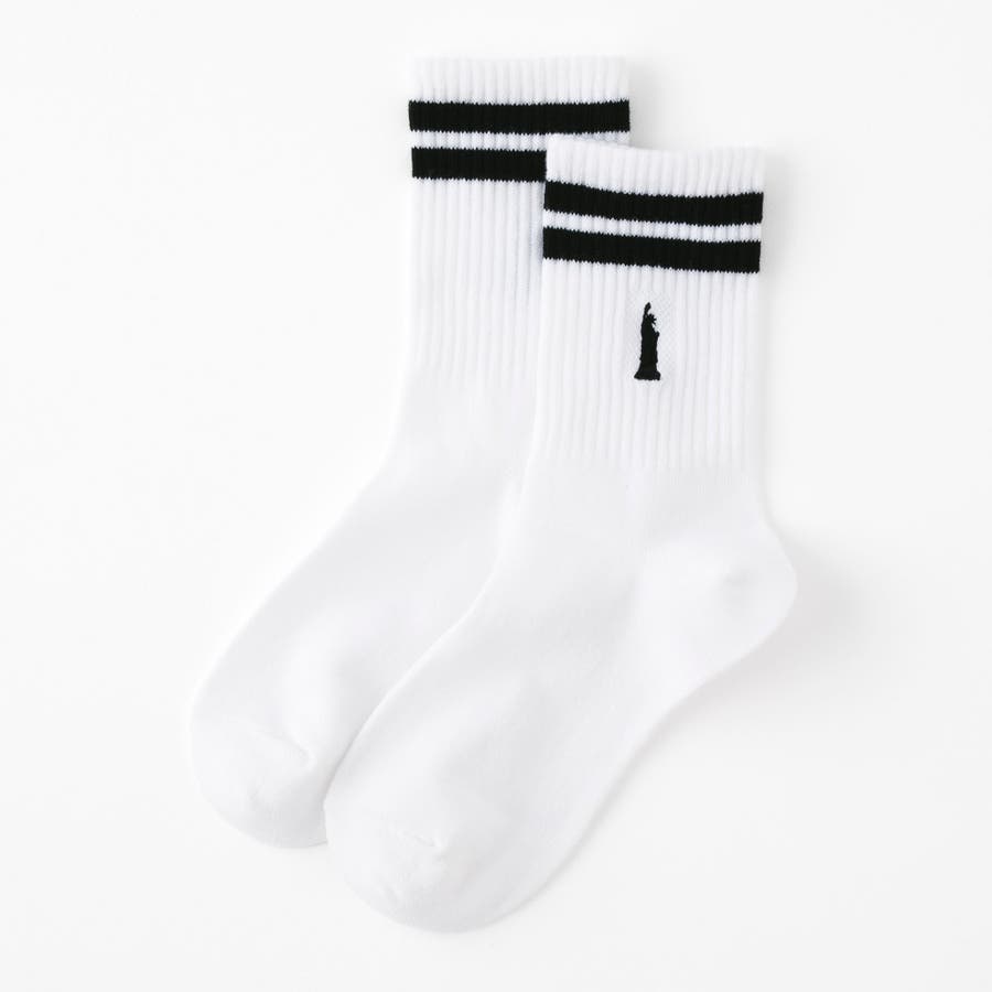 イーストボーイの女神マークの刺繍が入っていて、高級感のある靴下です。