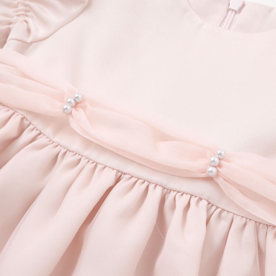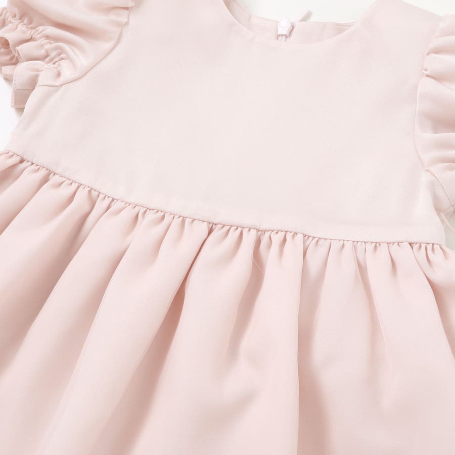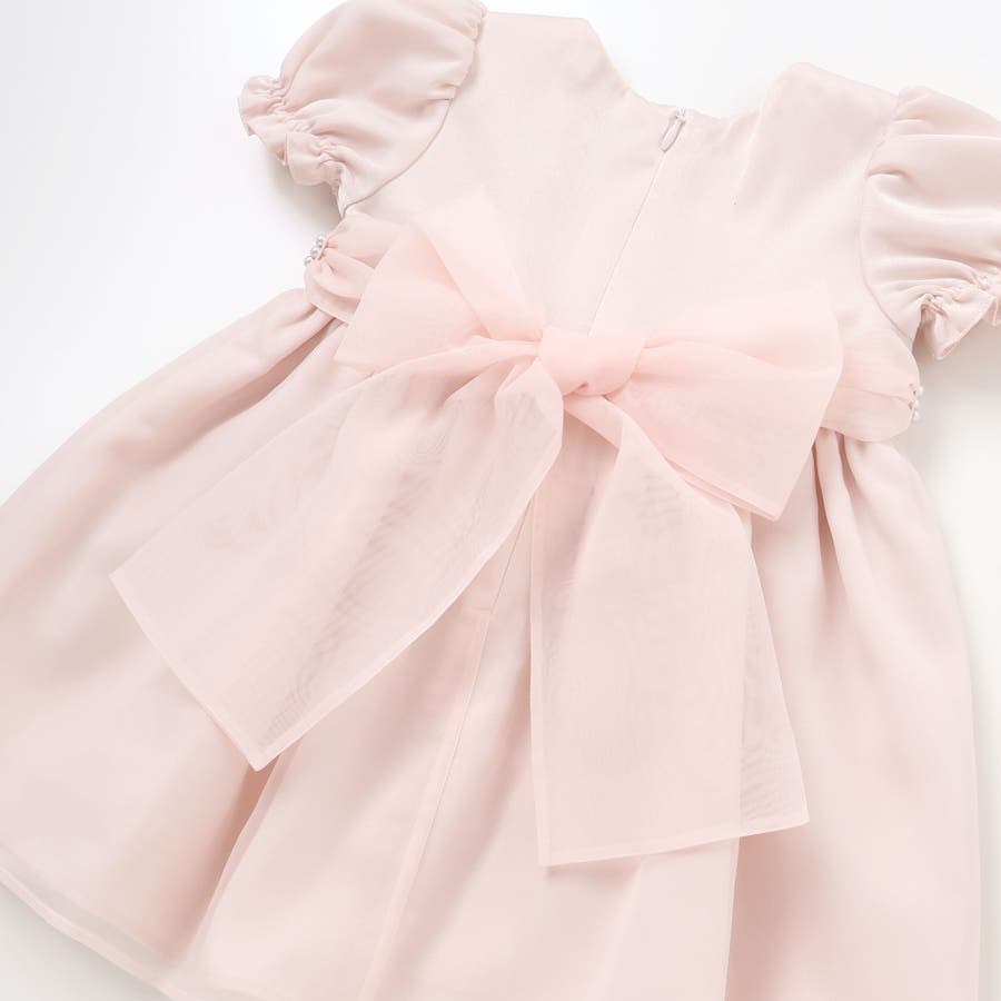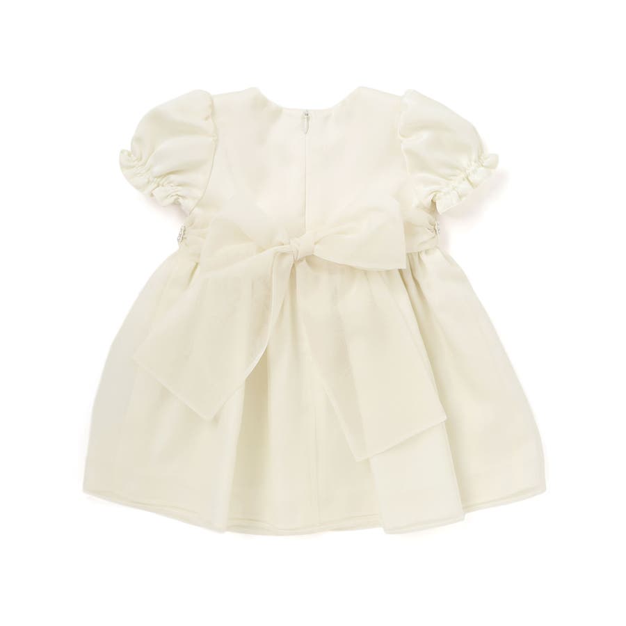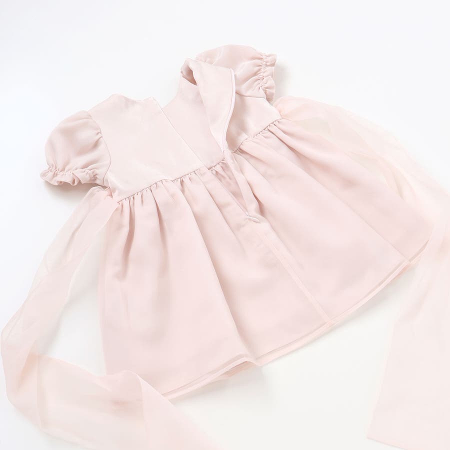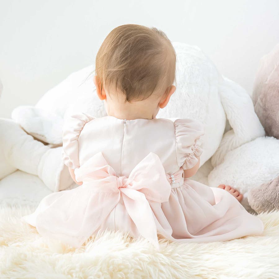 優しいタッチのサテンとオーガンジー素材を使用したベビー用ドレス。
