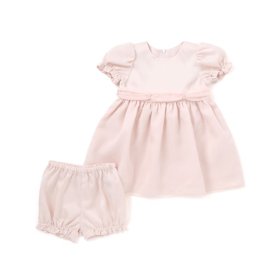 【日本製】シルデューサテン×オーガンジーパールベルトブルマ付きドレスベビー(70…